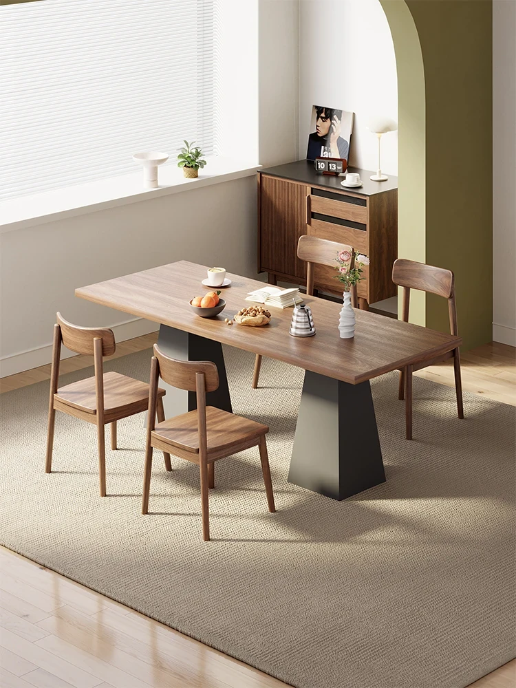 高級フレンチスタイルの中古ブラックウォールナット無垢材ロックプレートダイニングテーブルセット - 小さな空間にもぴったりなエレガントな長方形デザインで、贅沢な食事体験をお楽しみください!