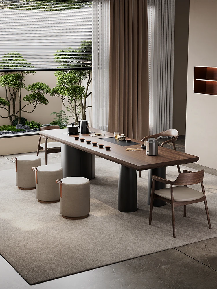 Premium North American Black Walnut Tea Table and Chair Set - 2025 New High-End Design for Living Room and Office, Solid Wood Large Tea Table, Perfect for Elegant Gatherings.