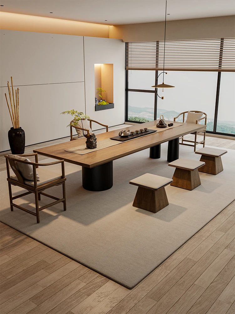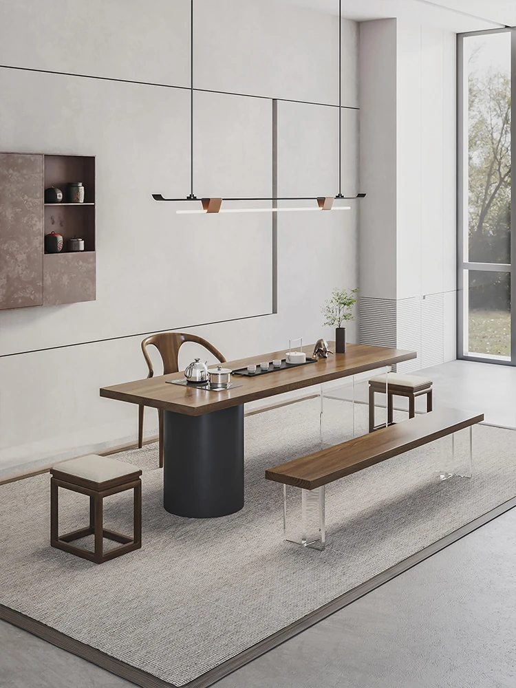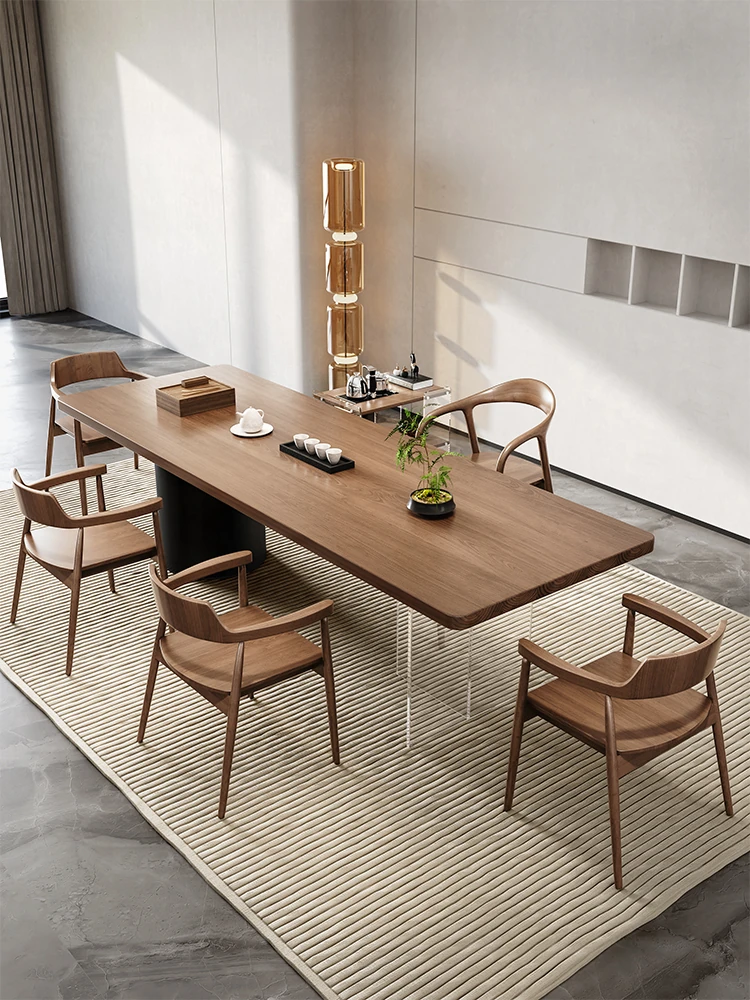 Modern Minimalist Solid Wood Large Tea Table and Chair Set with Acrylic Finish - Perfect for Home Living Room, Ideal for Kung Fu Tea Brewing