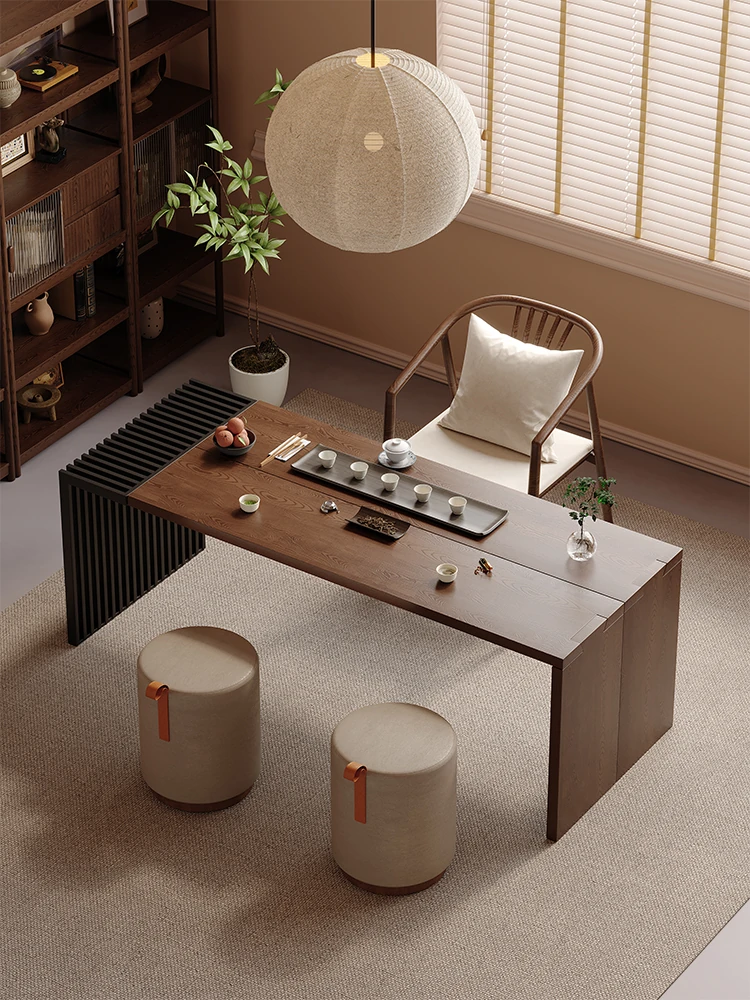 Elegant Song Dynasty Aesthetic Solid Wood Tea Table - New Chinese Style Craftsmanship for Living Room & Office, 2025 Collection, Perfect for Tea Ceremonies and Gatherings.