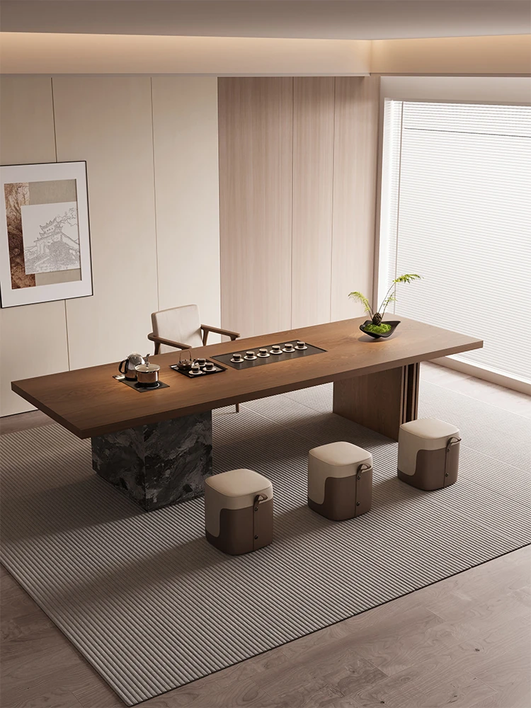 Premium Solid Wood Tea Table and Chair Set - New Chinese Style for Living Room and Office, 2025 High-End Design