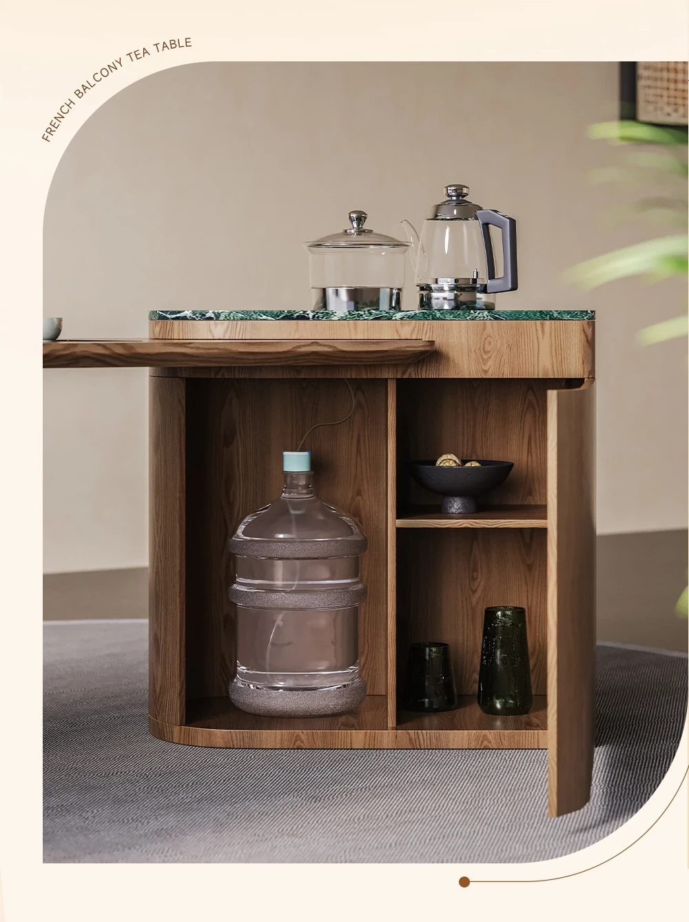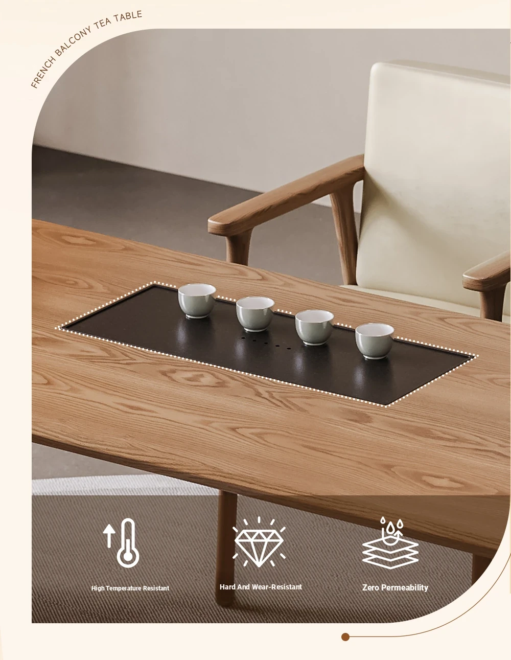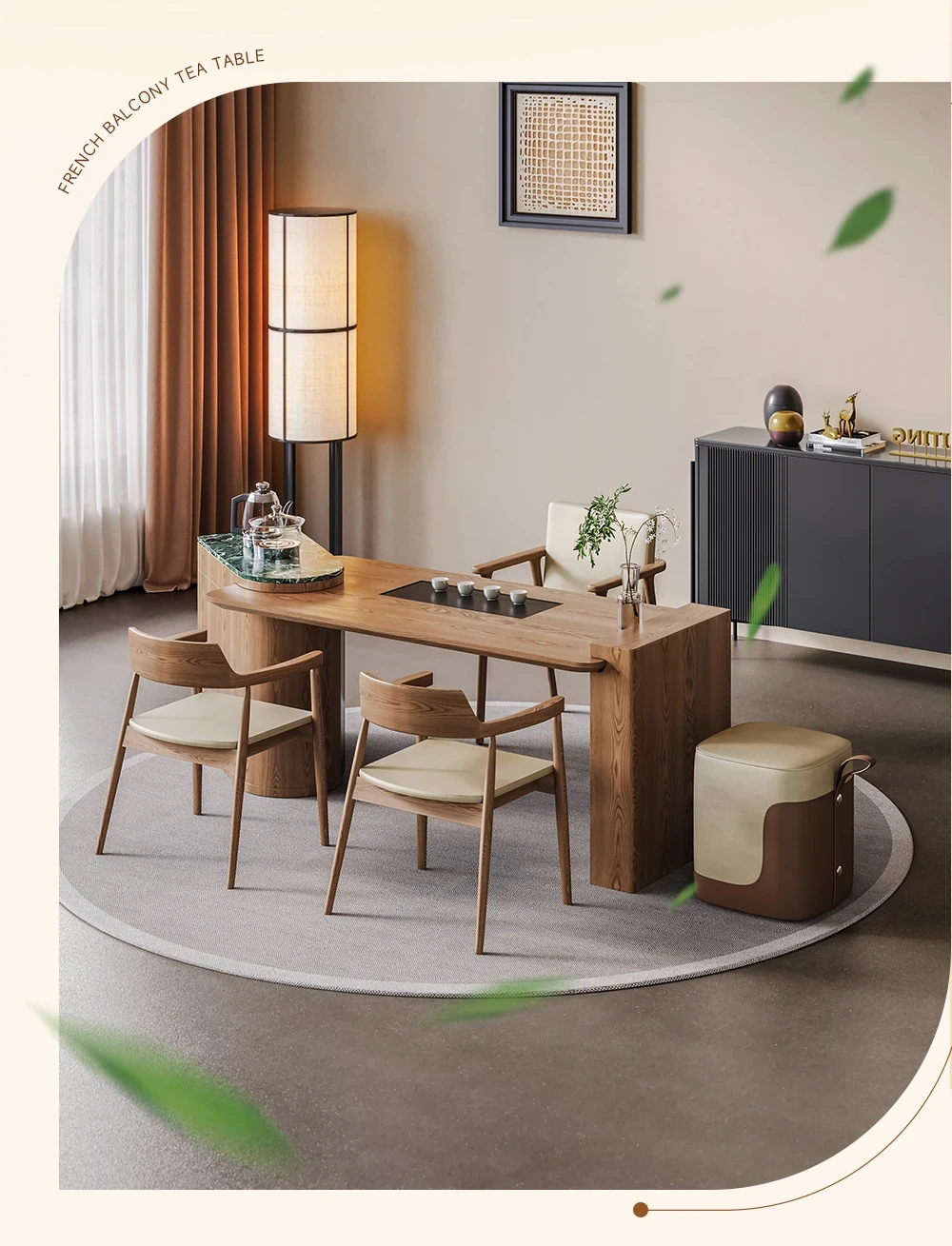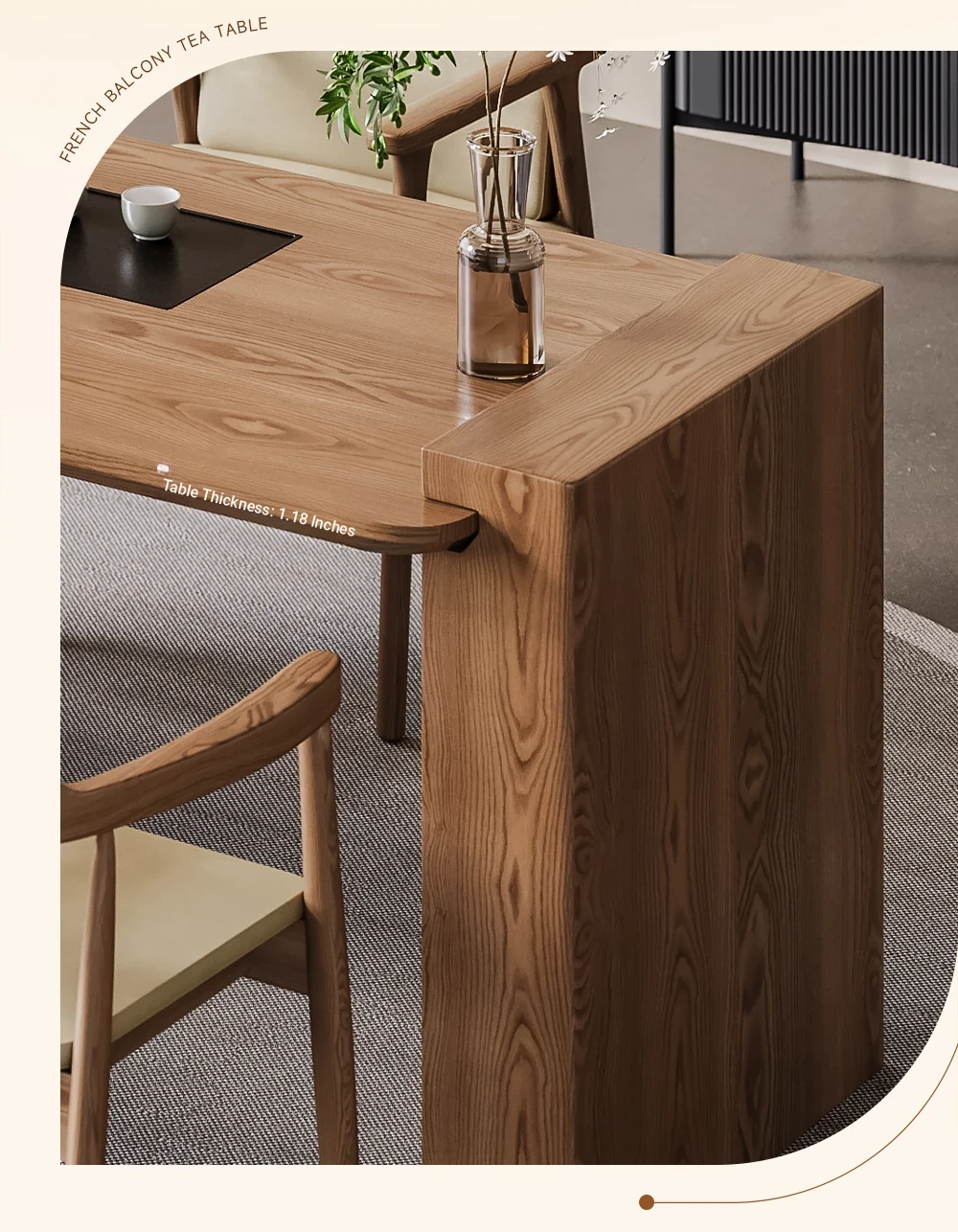 Elegant Solid Wood Island Balcony Tea Table Set - 2025 New High-End Design in Ash Wood for Home Living Room, Perfect for Cozy Gatherings and Stylish Décor.