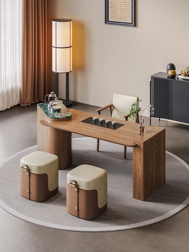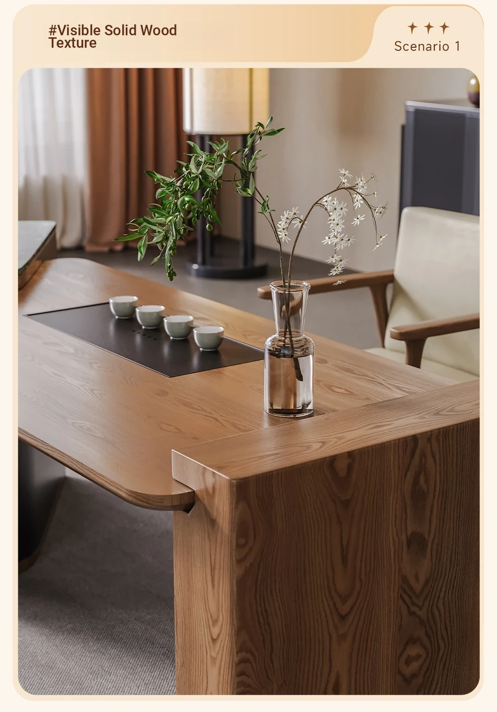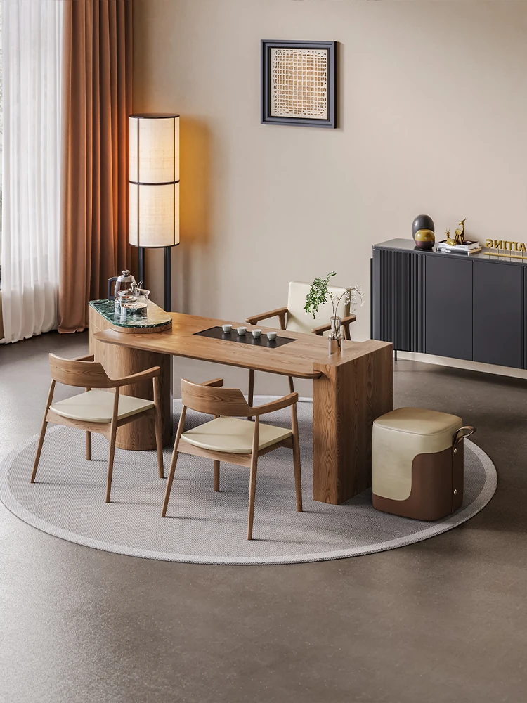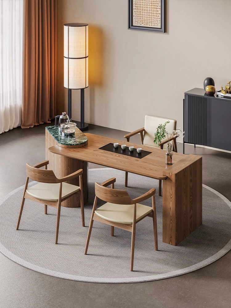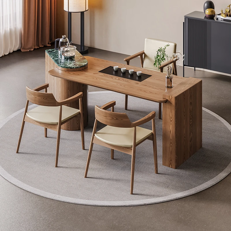 Elegant Solid Wood Island Balcony Tea Table Set - 2025 New High-End Design in Ash Wood for Home Living Room, Perfect for Cozy Gatherings and Stylish Décor.