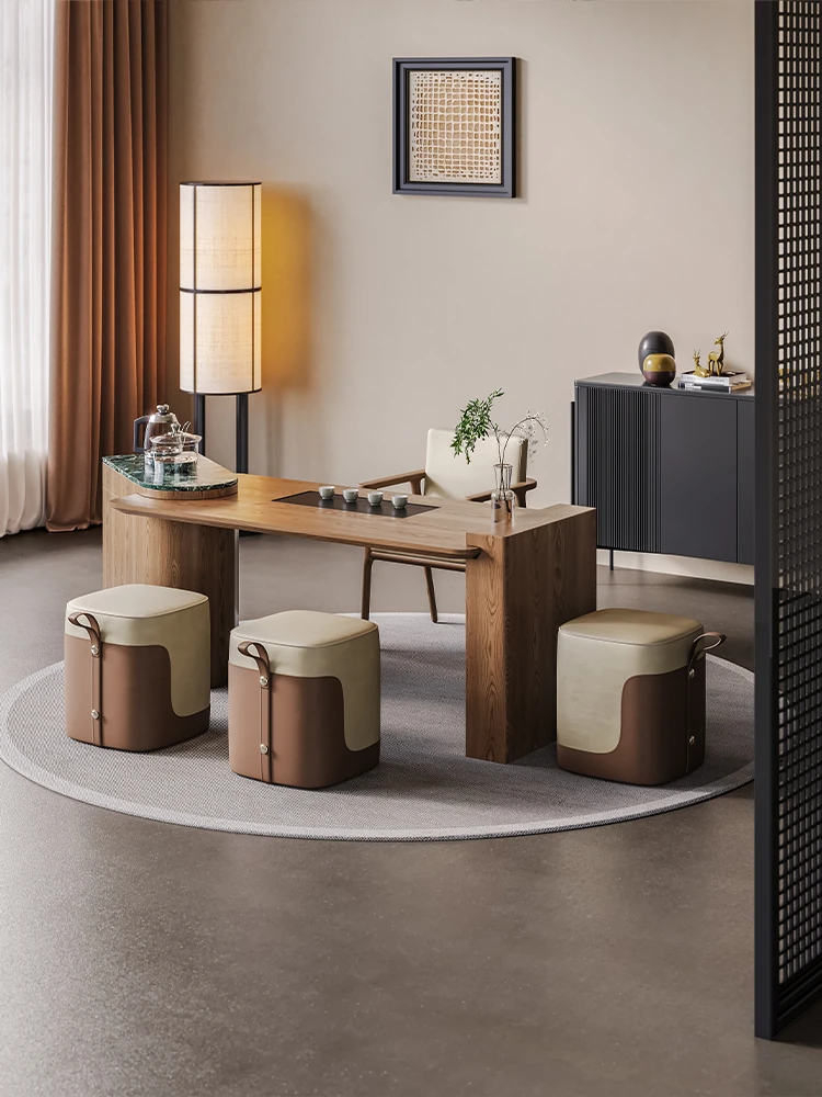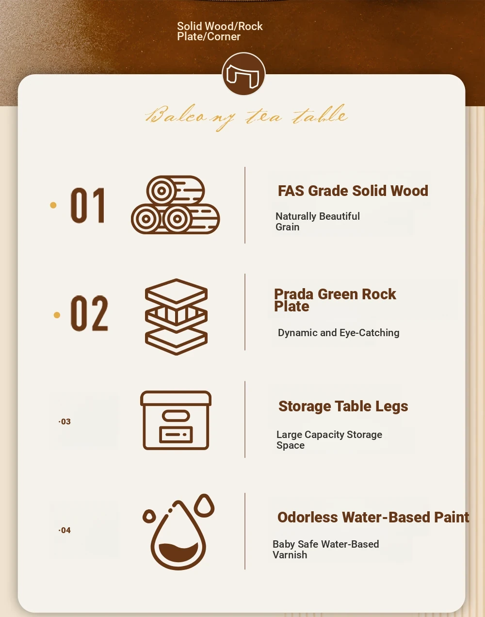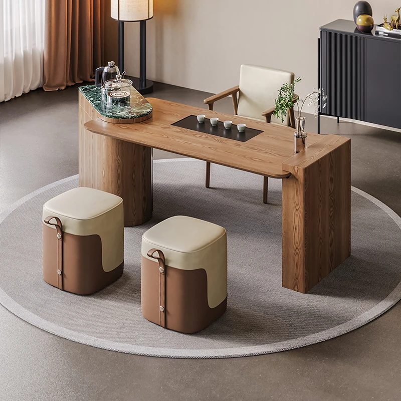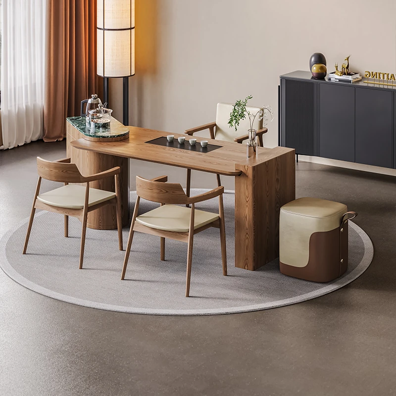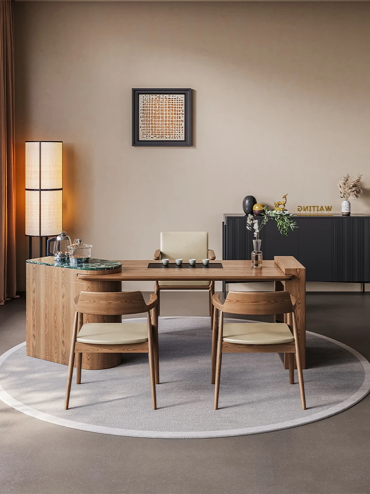 Elegant Solid Wood Island Balcony Tea Table Set - 2025 New High-End Design in Ash Wood for Home Living Room, Perfect for Cozy Gatherings and Stylish Décor.