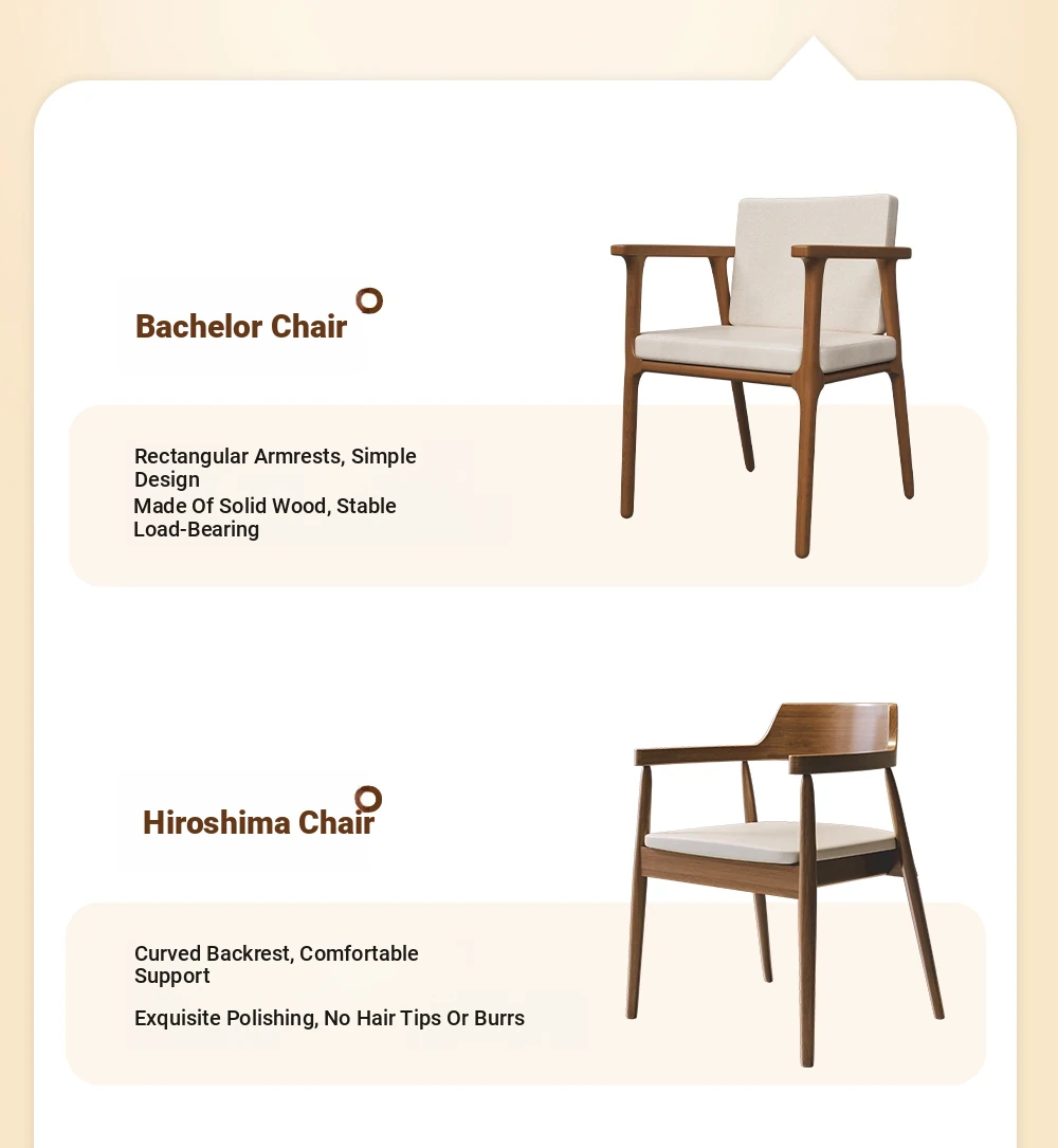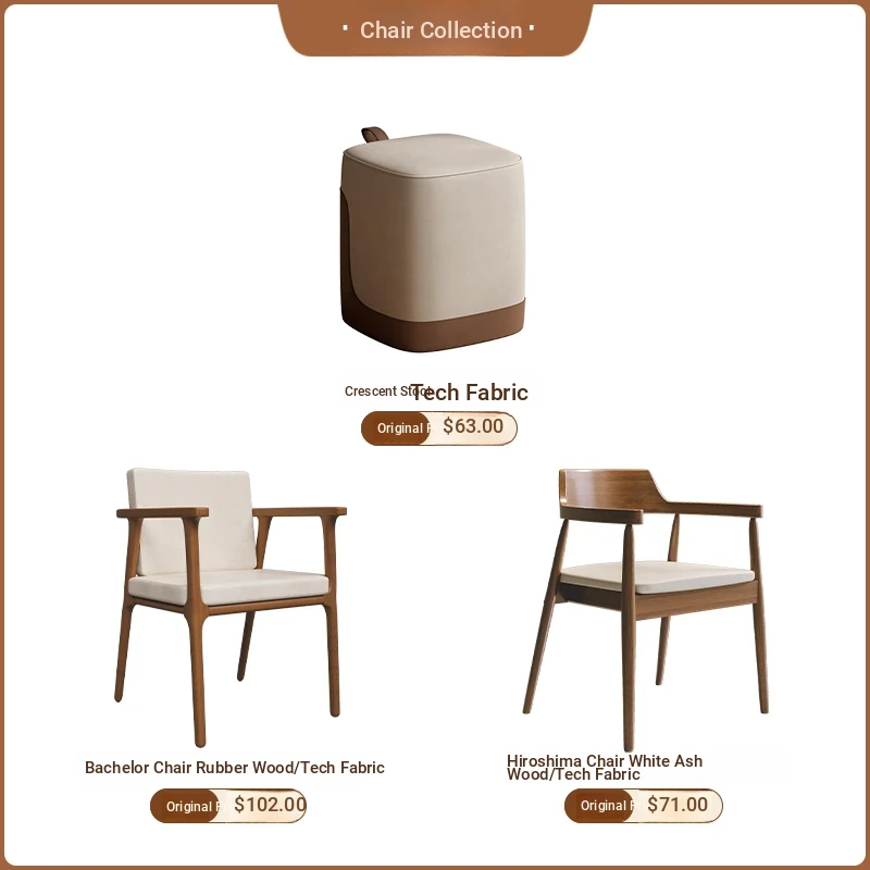 55.12 in North American Ash Tea Table + Bachelor Chair + Hiroshima Chair * 2 + Crescent Bench