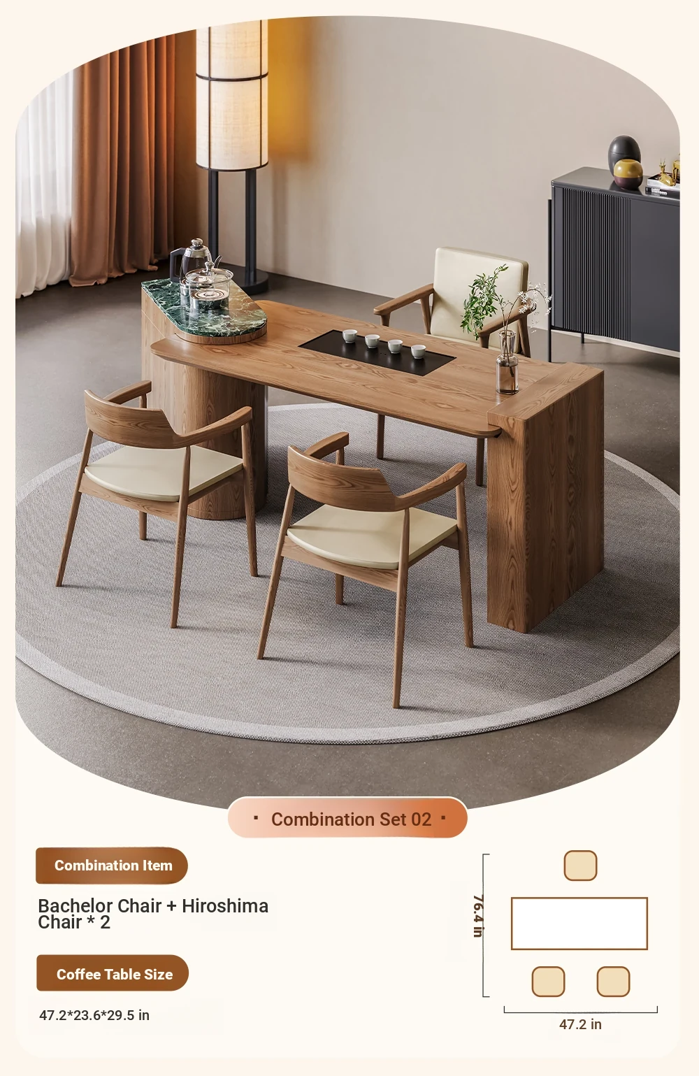 70.87 in North American Ash Tea Table + Bachelor Chair + Hiroshima Chair * 2