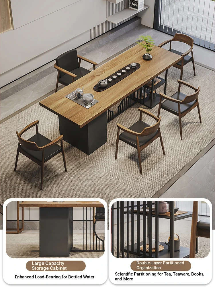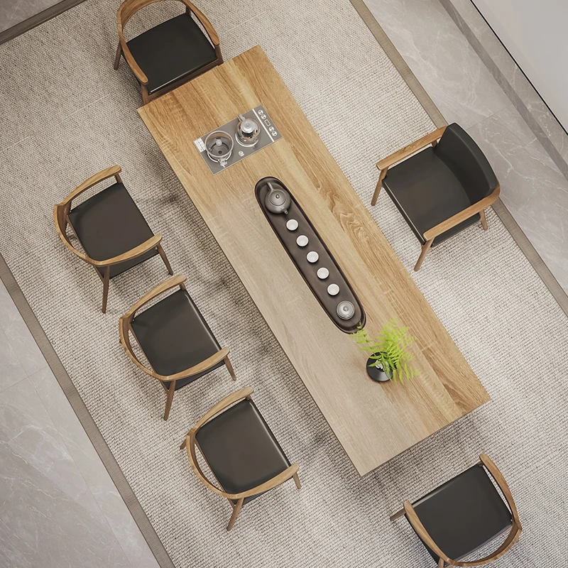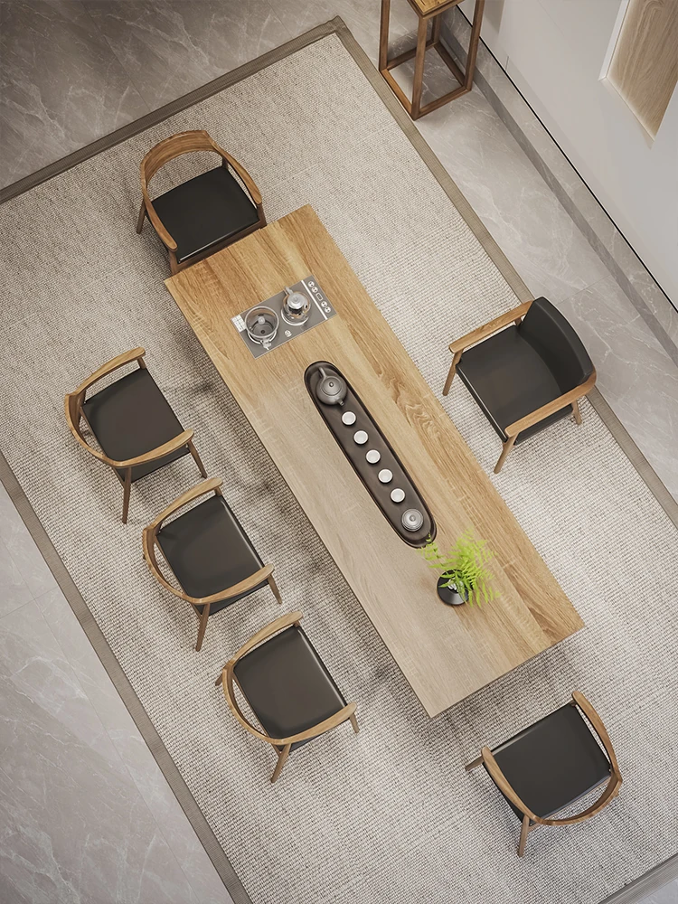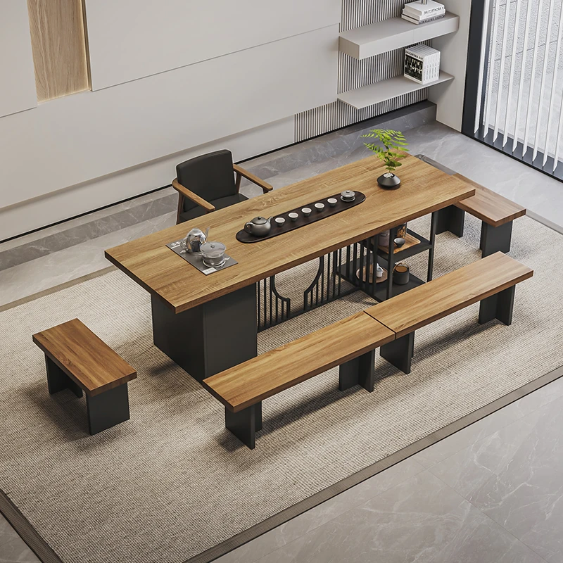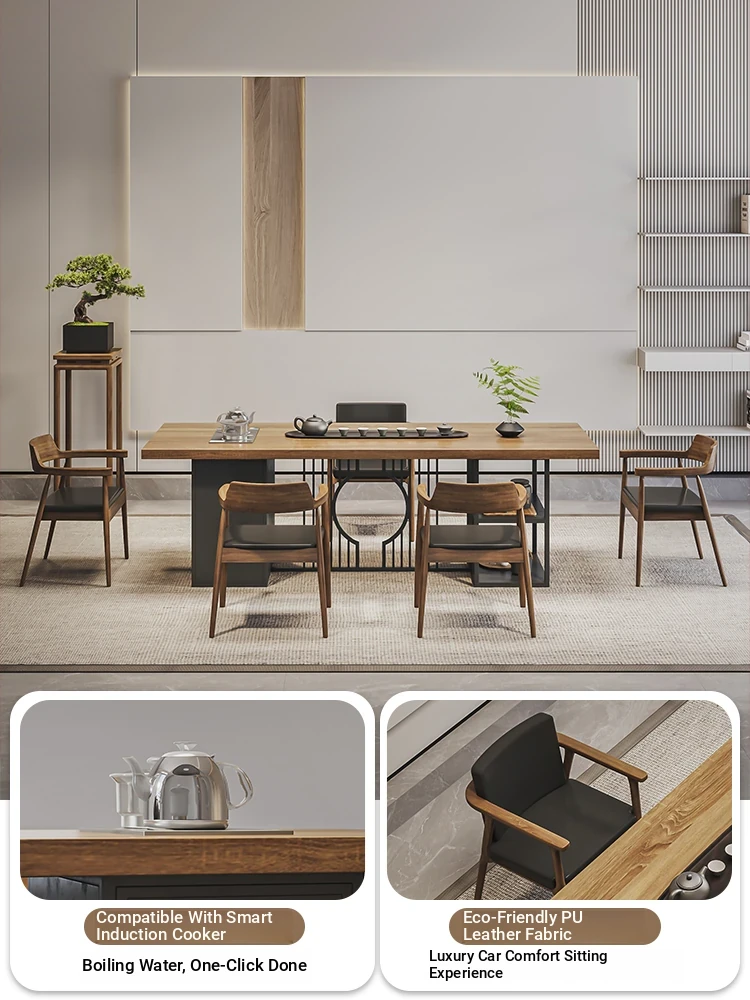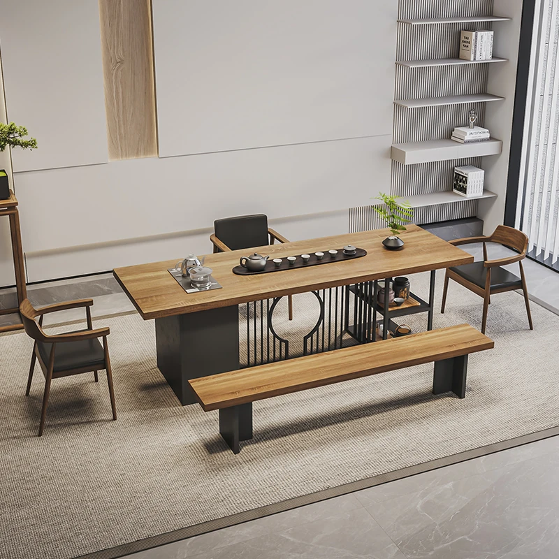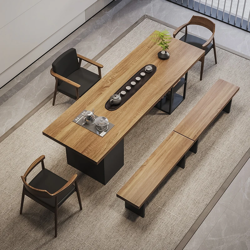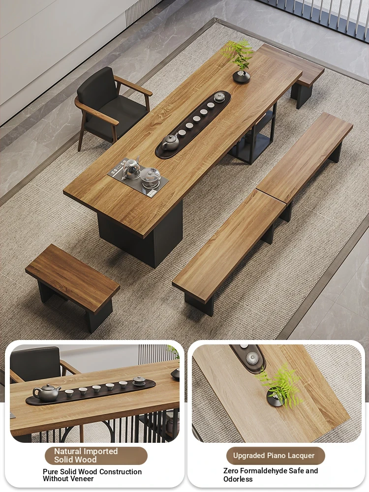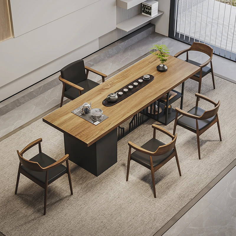Stylish Modern Chinese Solid Wood Tea Table and Chair Set - Ideal for Office or Living Room, Spacious Design in Natural Finish, Perfect for Home Use