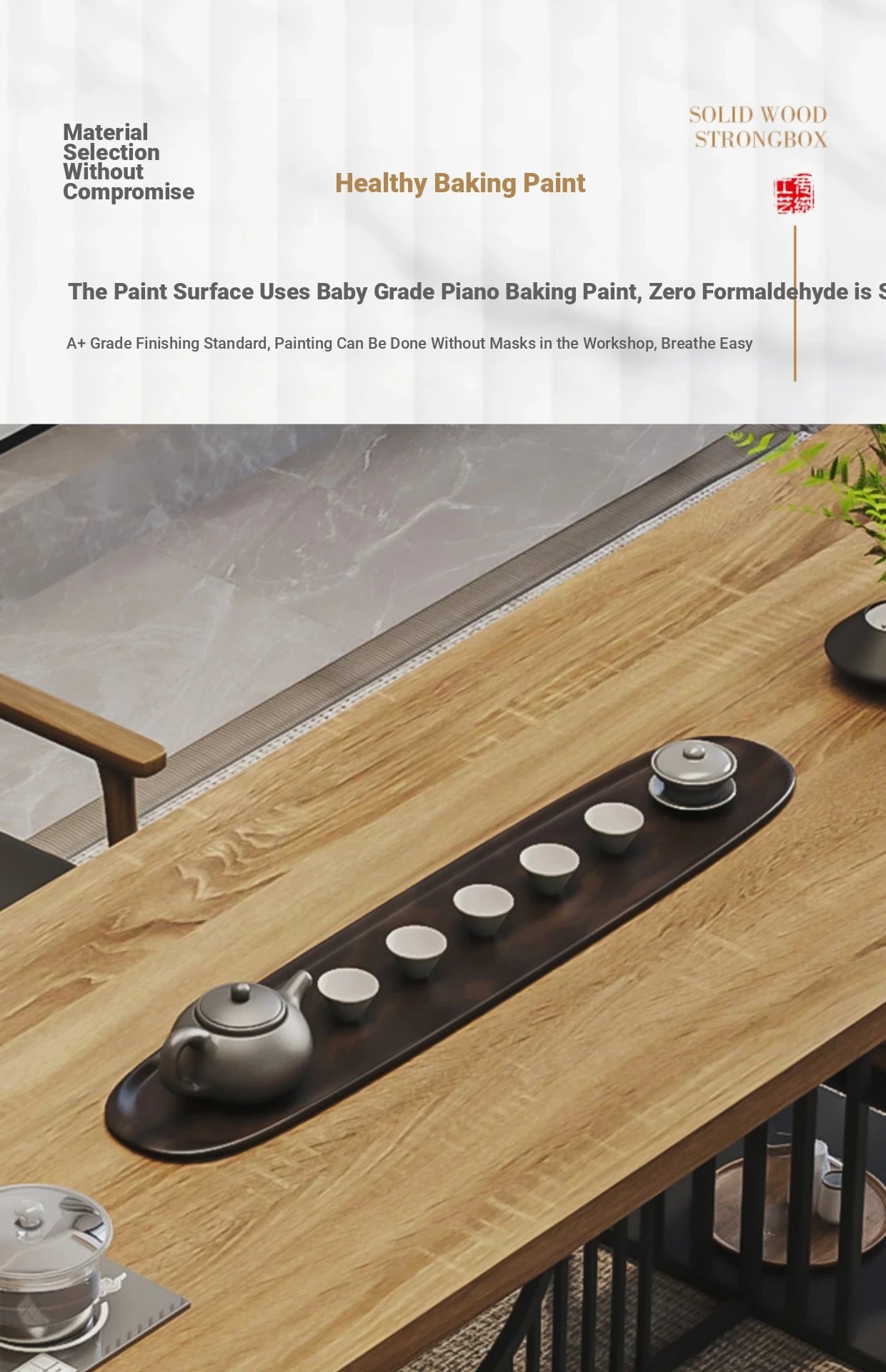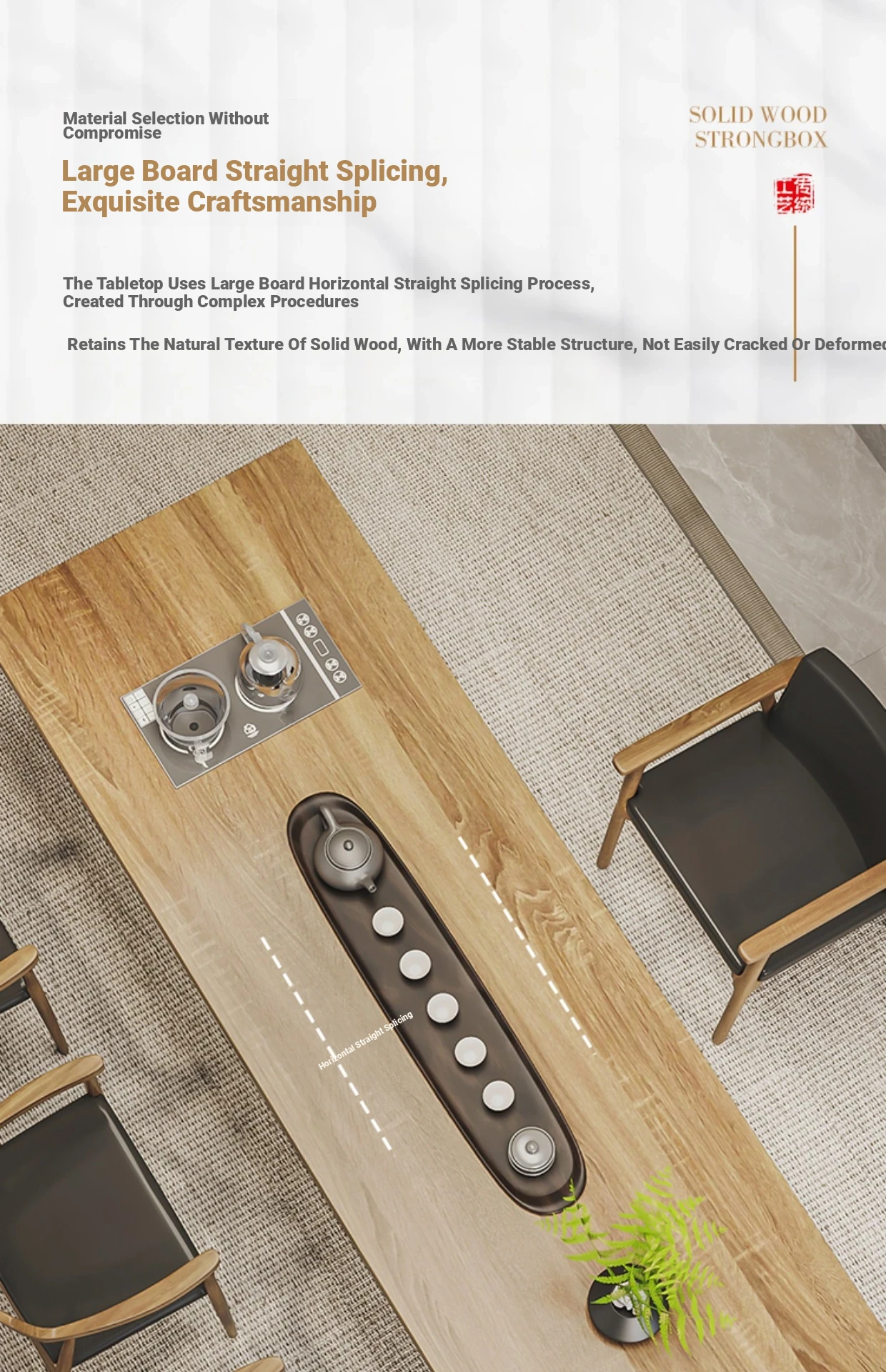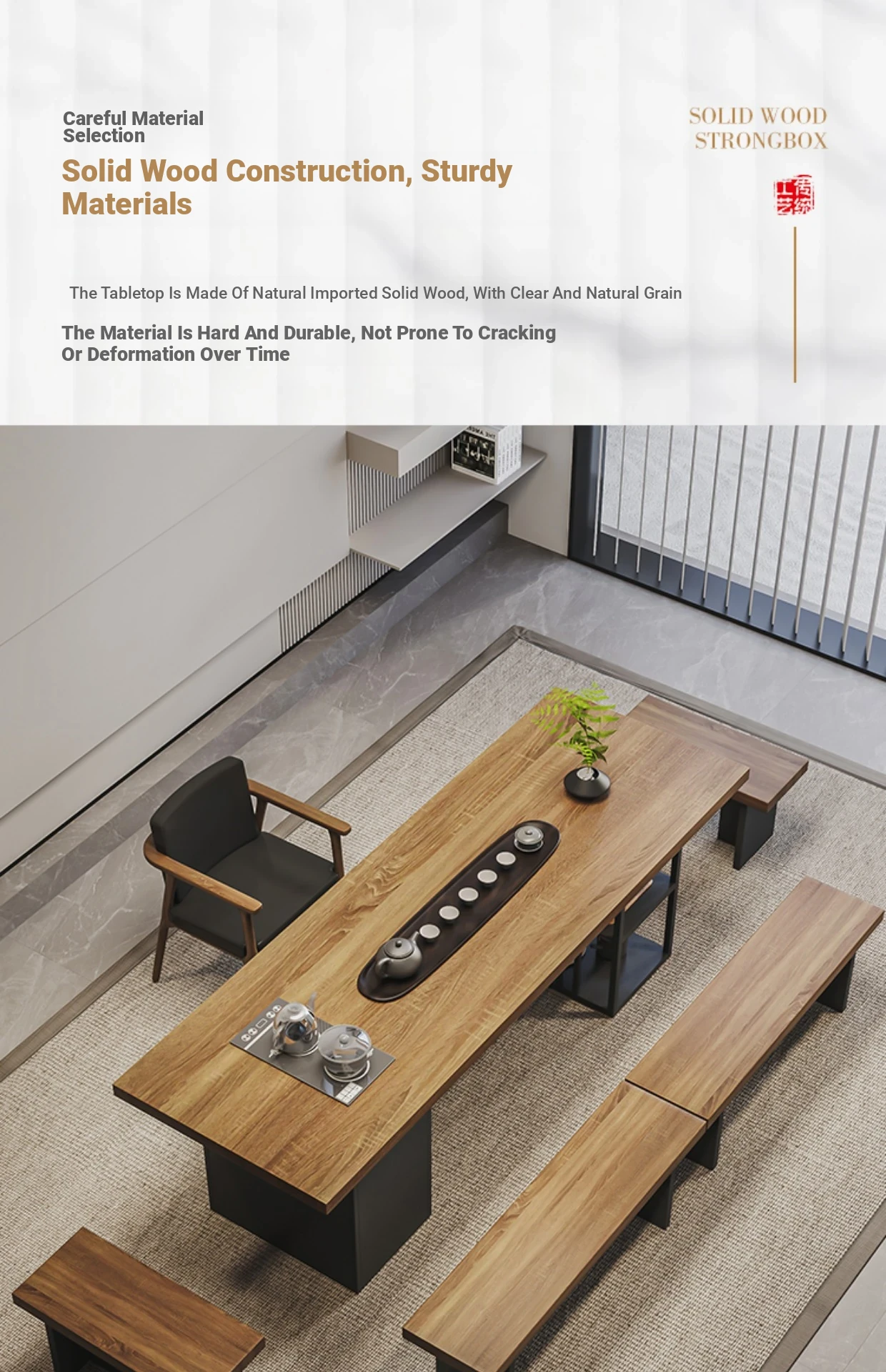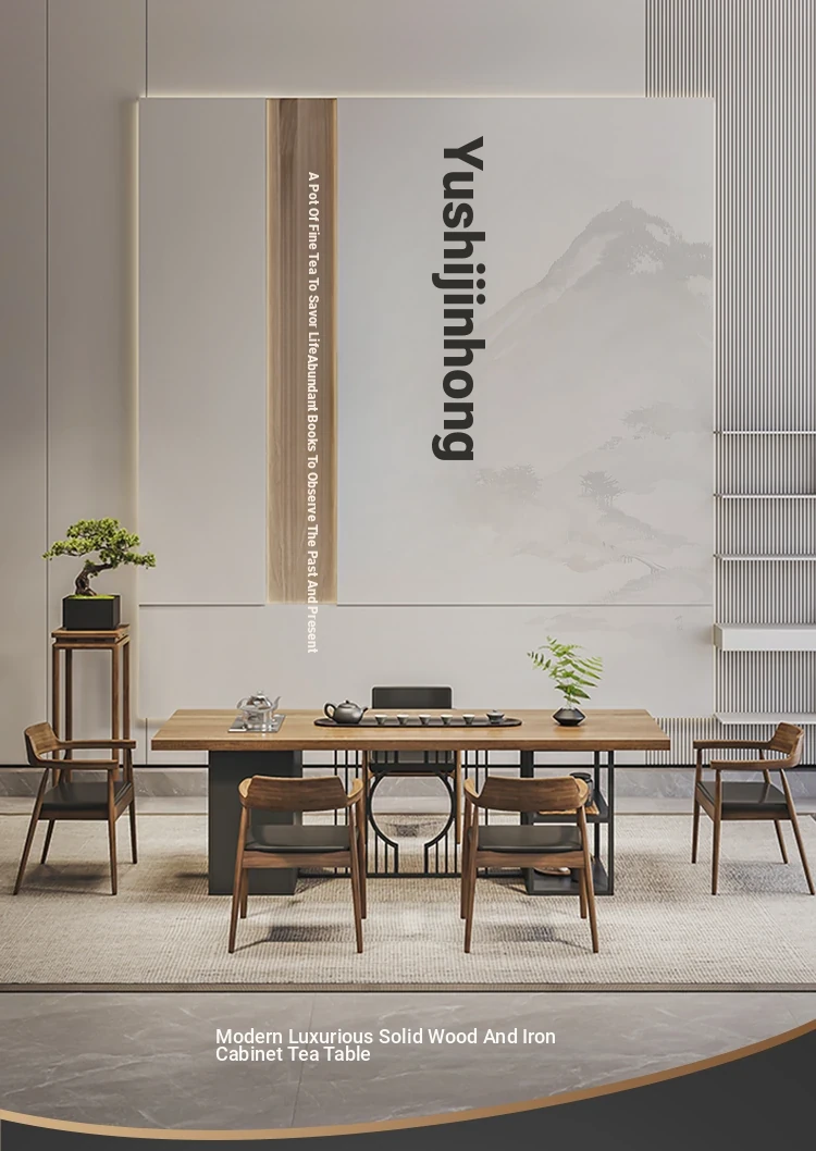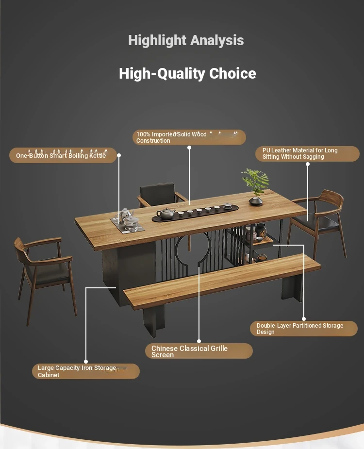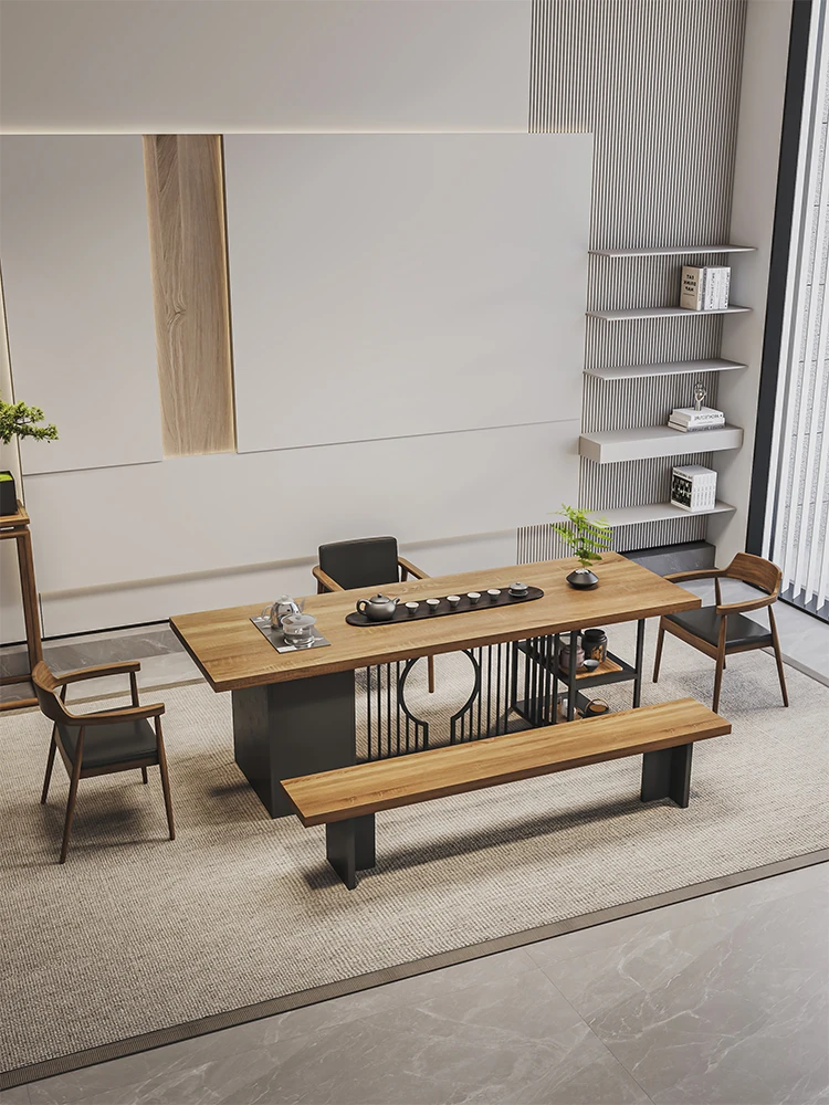 Stylish Modern Chinese Solid Wood Tea Table and Chair Set - Ideal for Office or Living Room, Spacious Design in Natural Finish, Perfect for Home Use