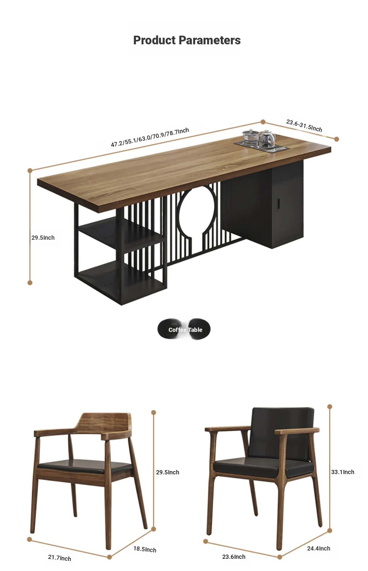 "Table and Chair Matching" 70.87 in Tea Table + Bachelor's Chair + Short Stool * 2+70.87 in Bench
