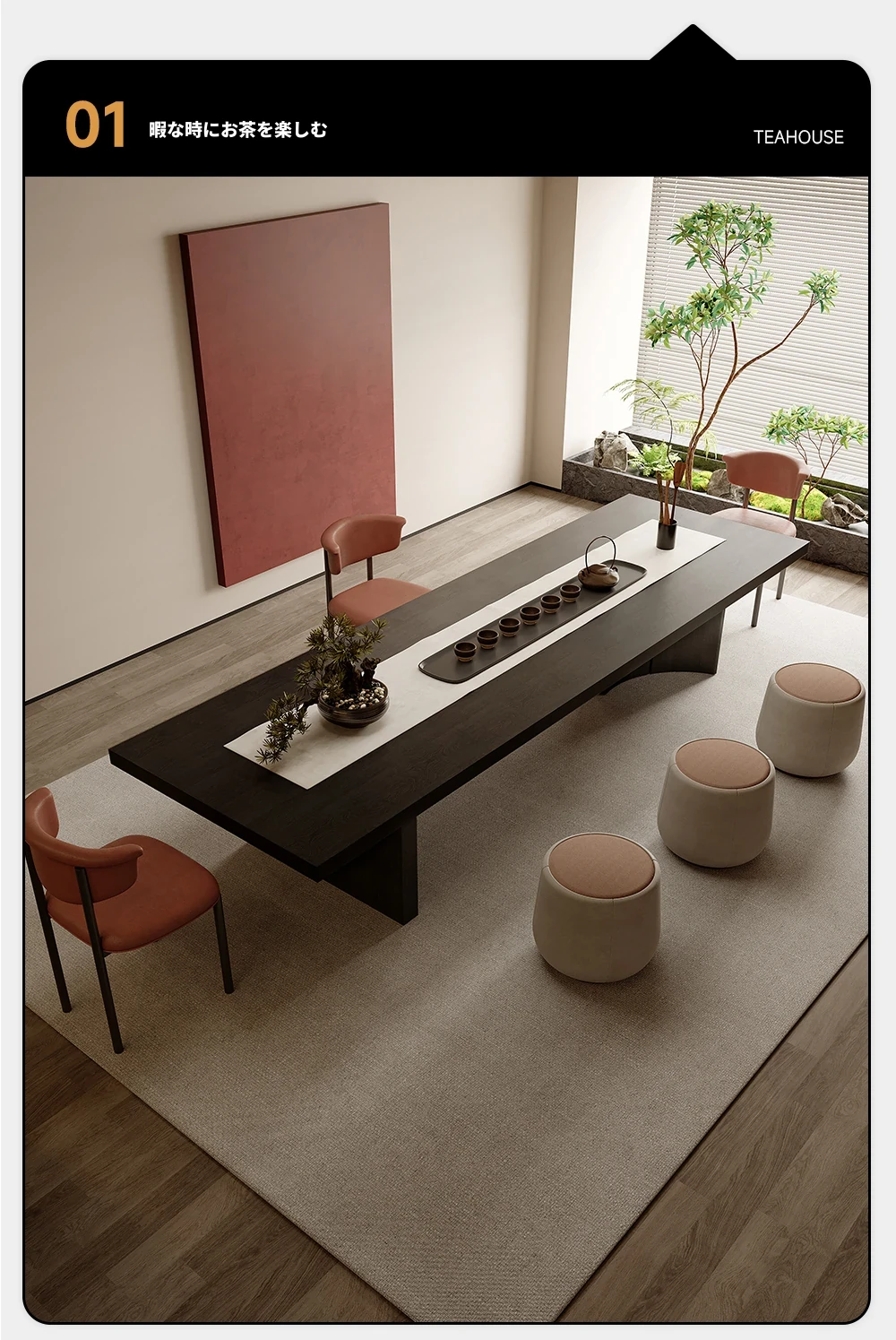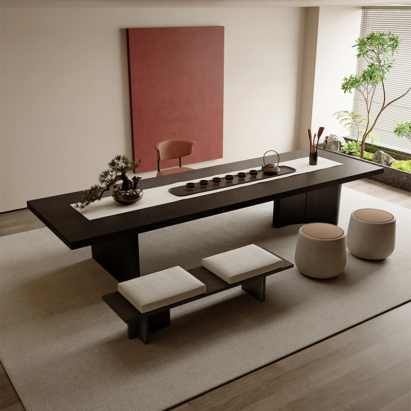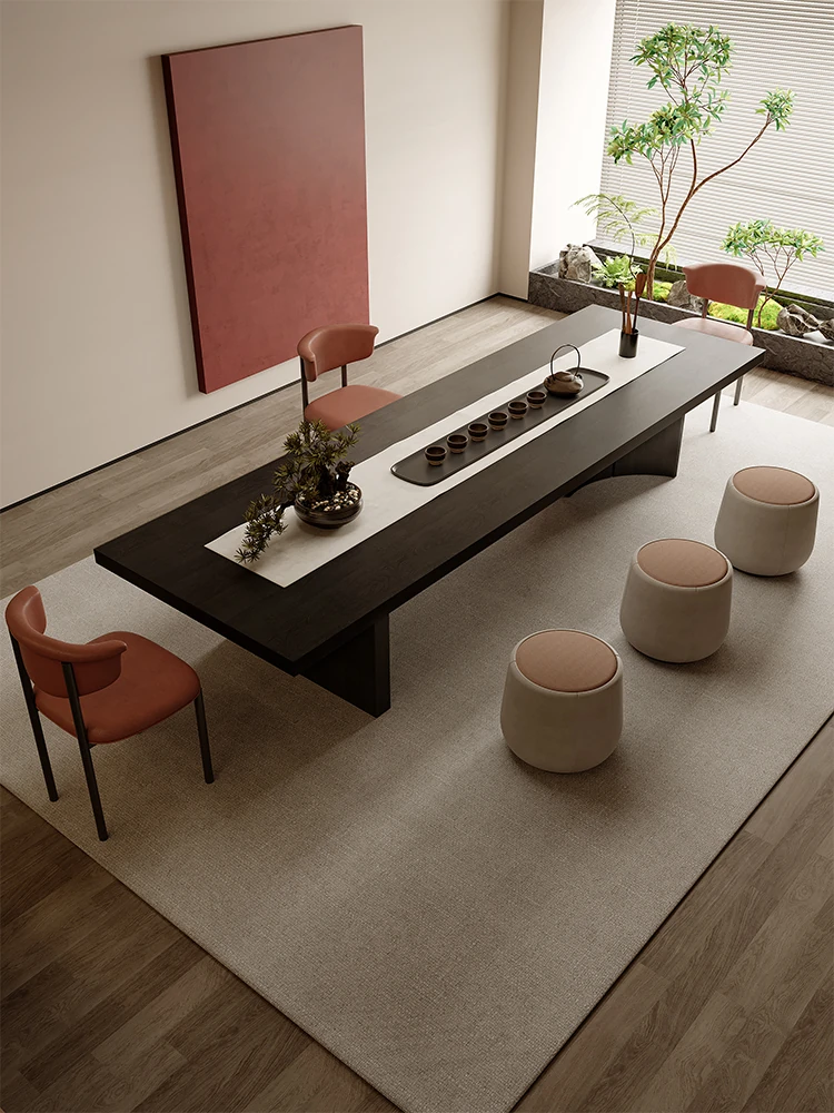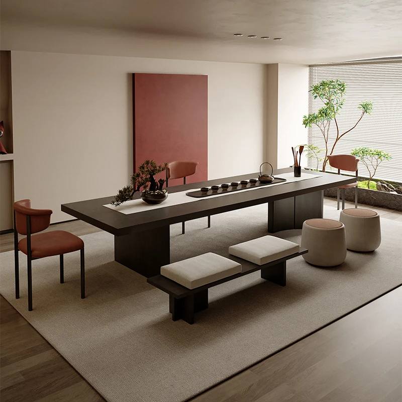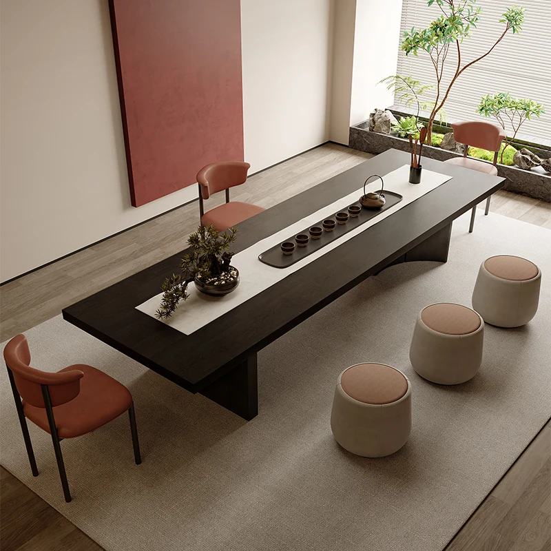 吉赠イタリアンミニマリストデザインの無垢材ビッグボード茶卓&椅子セット 2025年新作 高級リビング・オフィス用接待茶台