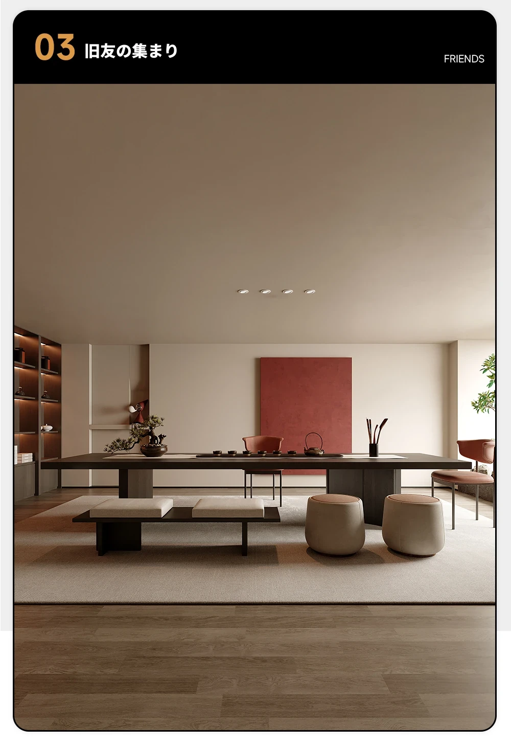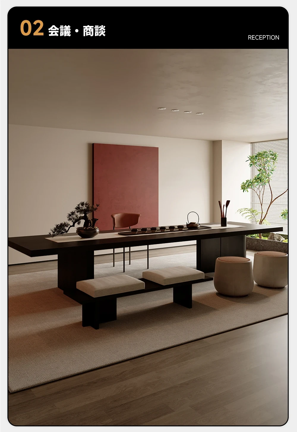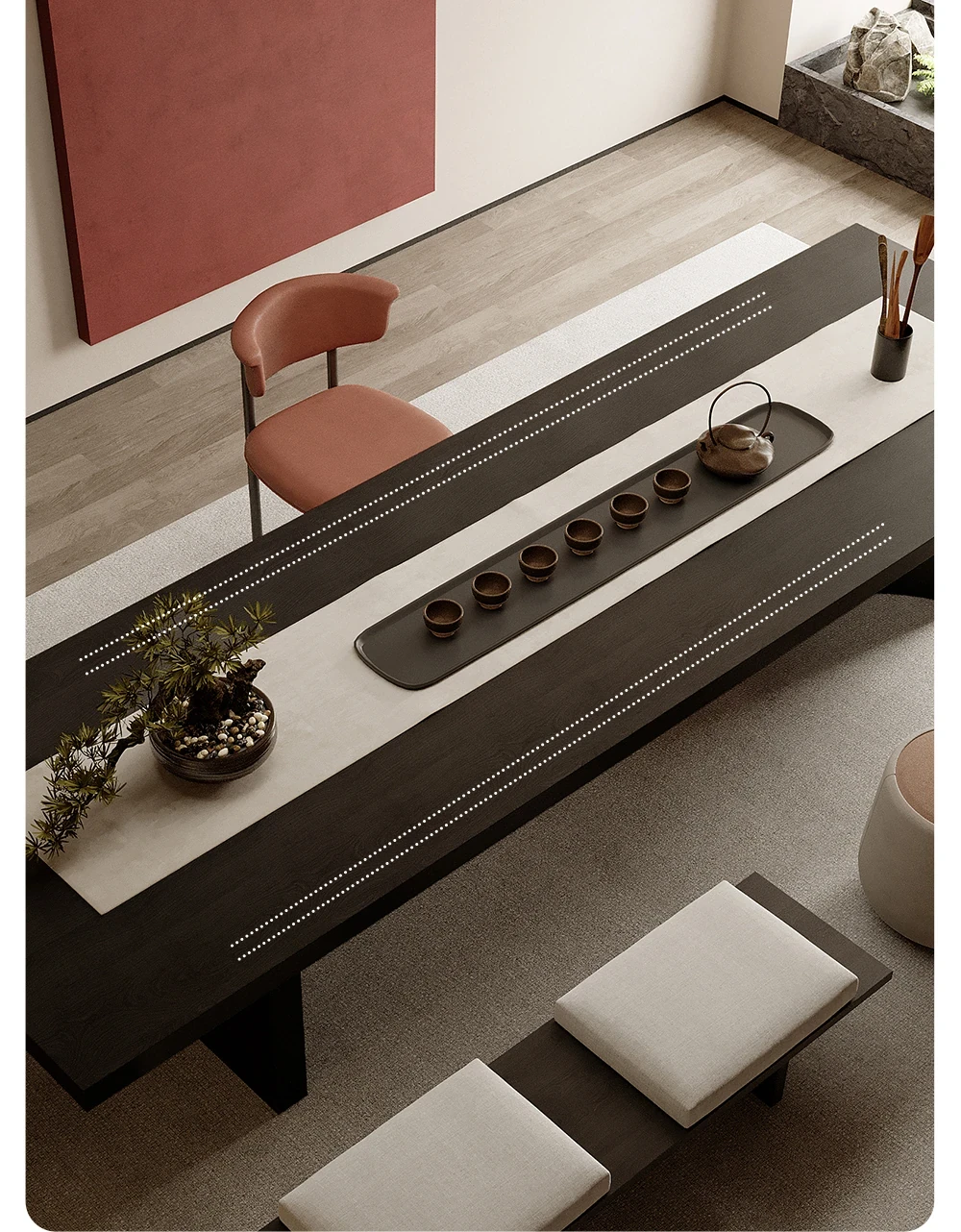 吉赠イタリアンミニマリストデザインの無垢材ビッグボード茶卓&椅子セット 2025年新作 高級リビング・オフィス用接待茶台