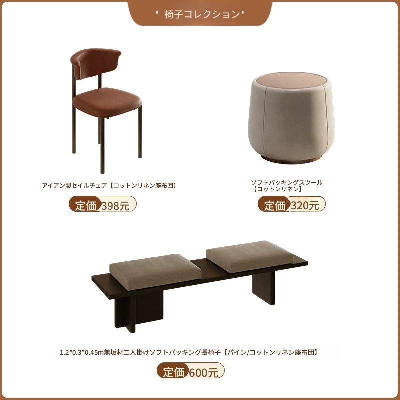 【ベストセラー】2.2メートル茶テーブル+ハイセイル椅子+ソフトパッキングスツール*2+1.2メートルベンチ