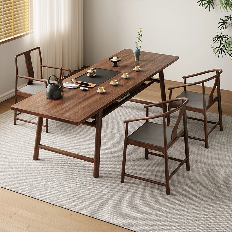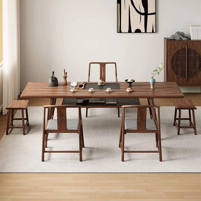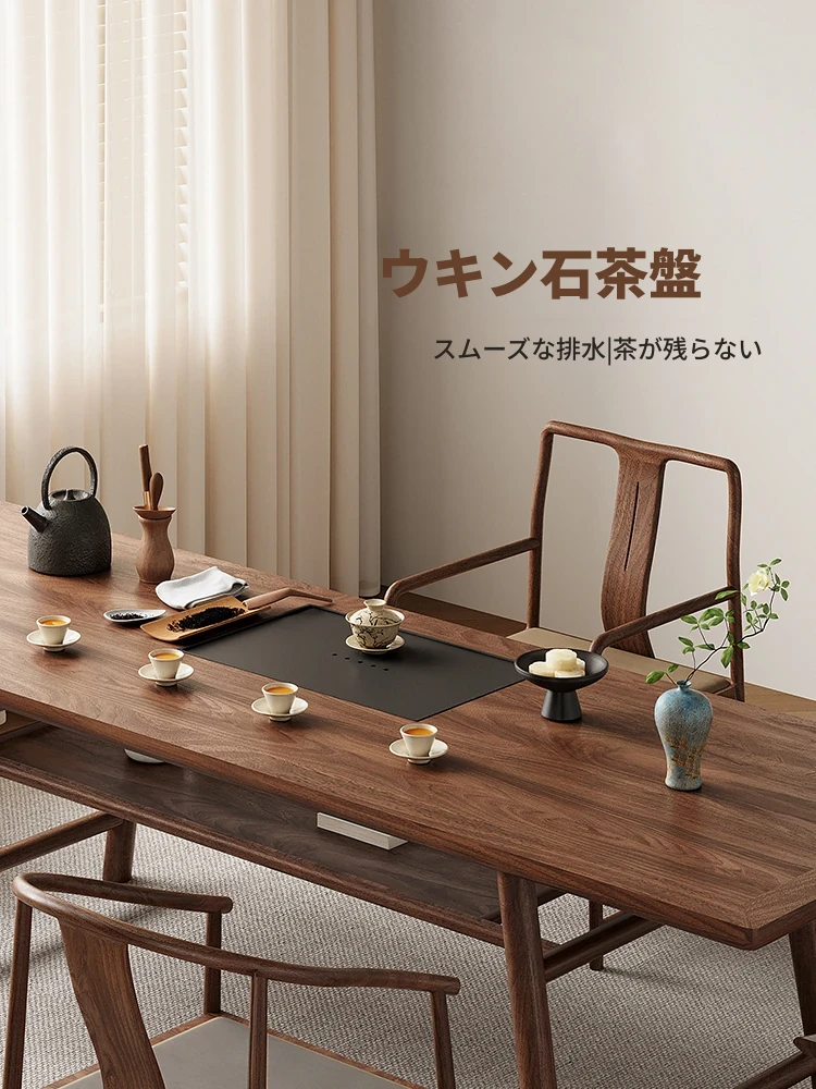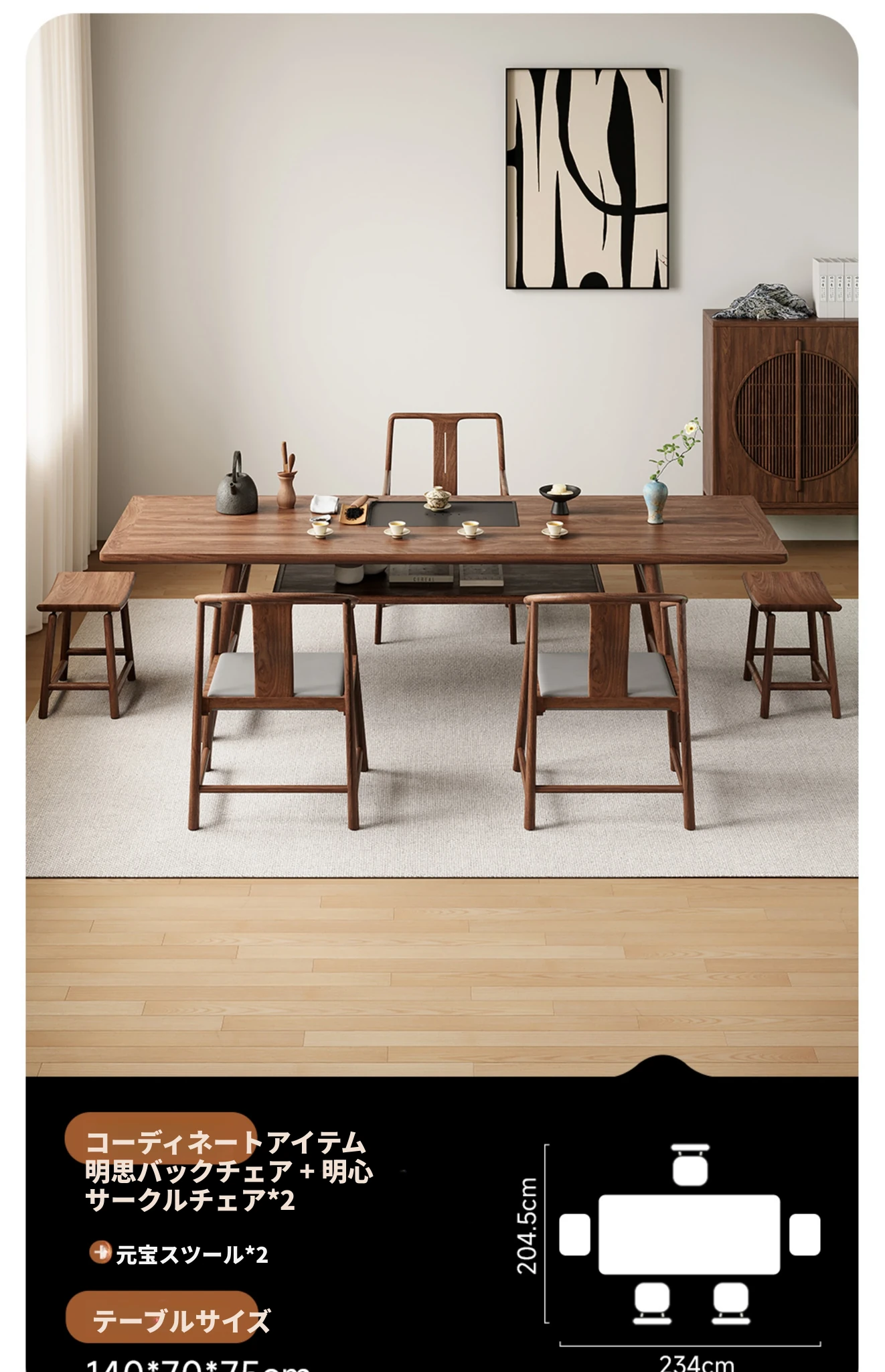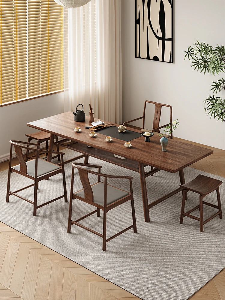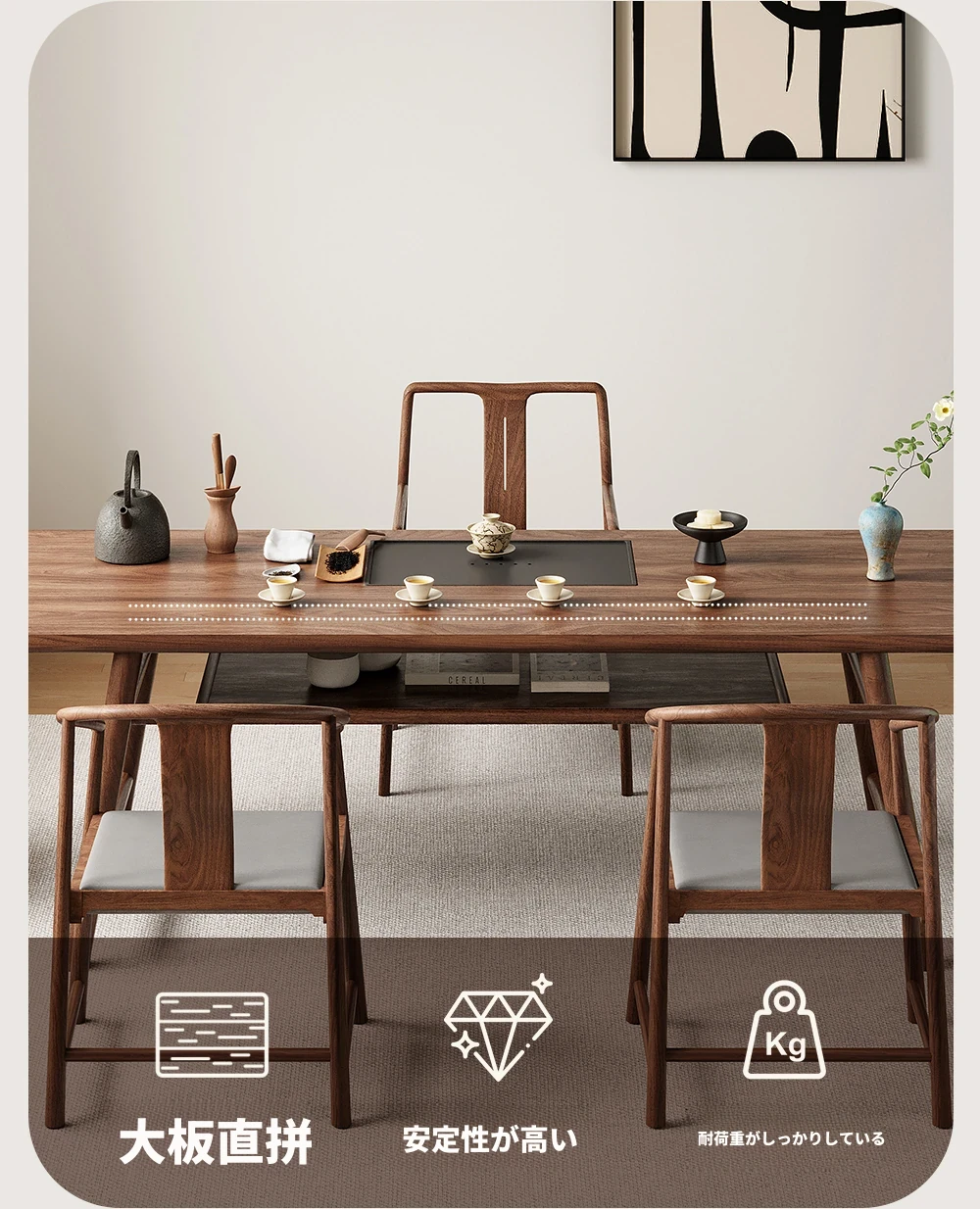 新中式ブラックウォールナット製の大板茶卓椅子セット - 禅の精神を感じる高級感あふれる実木茶台、2025年新作!心地よいひとときをお届けします。