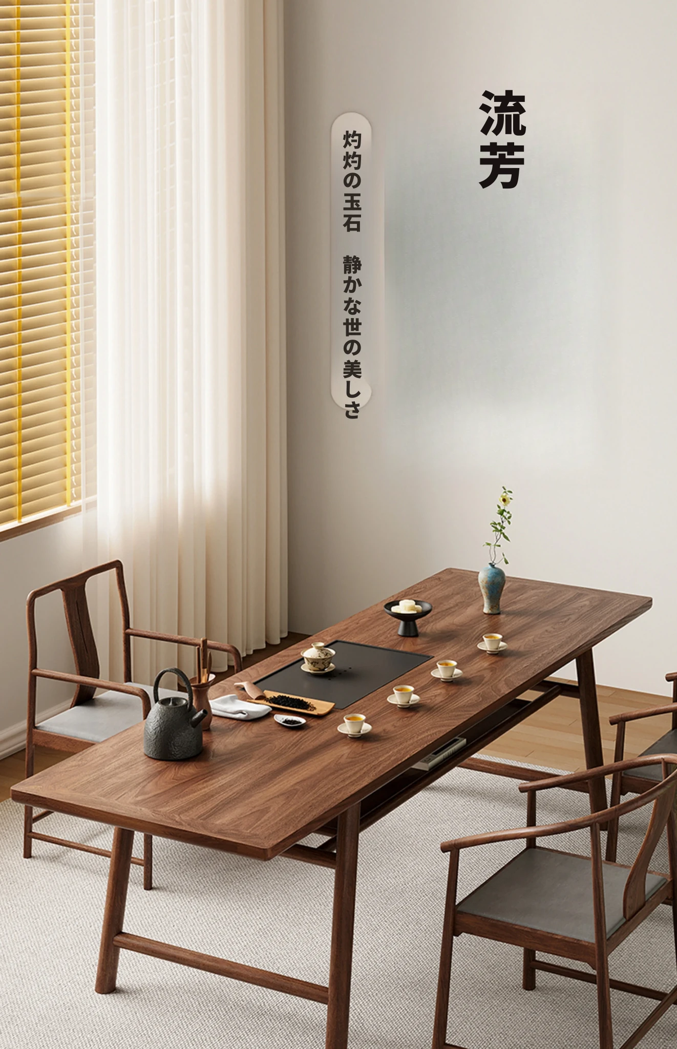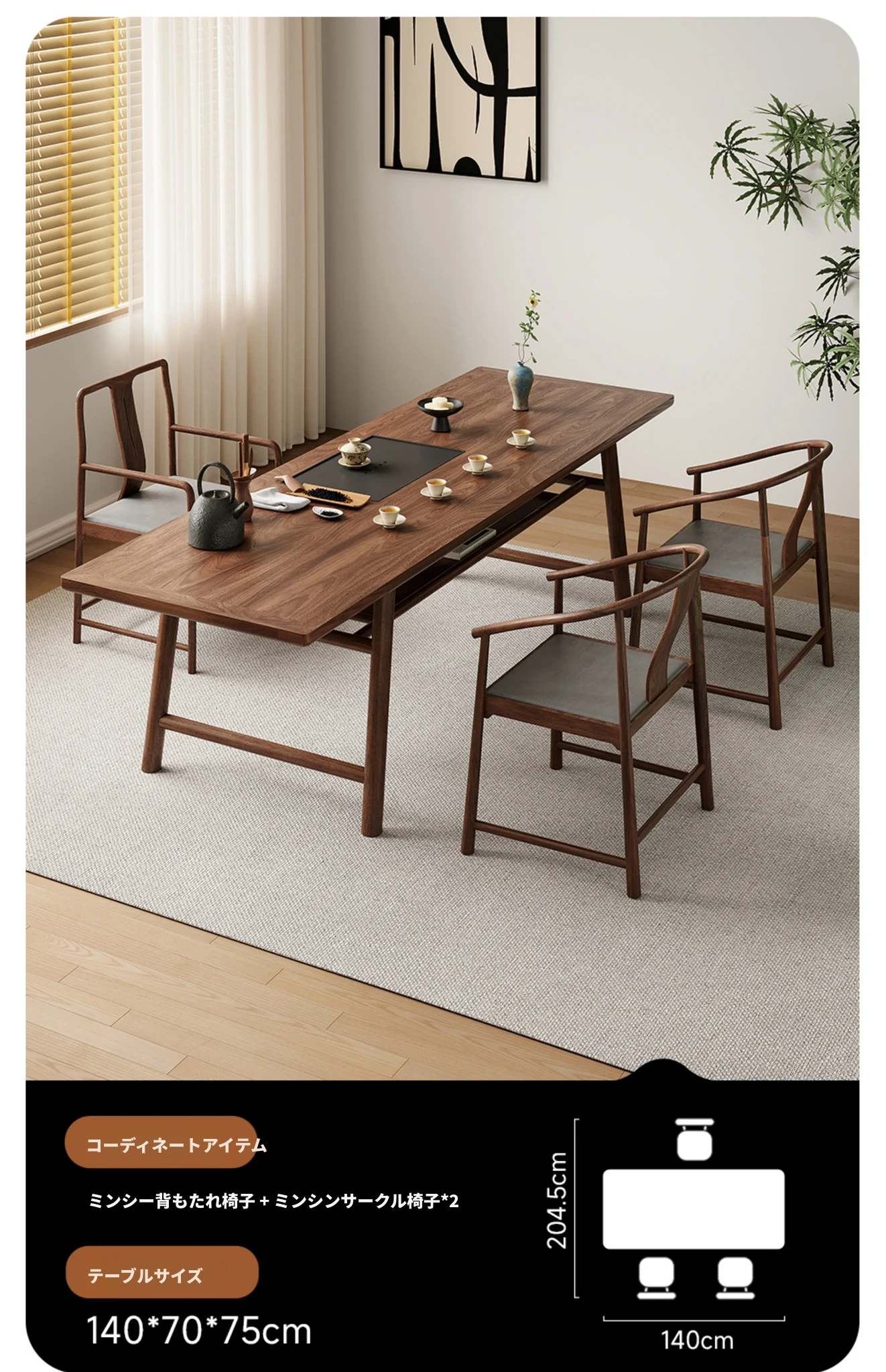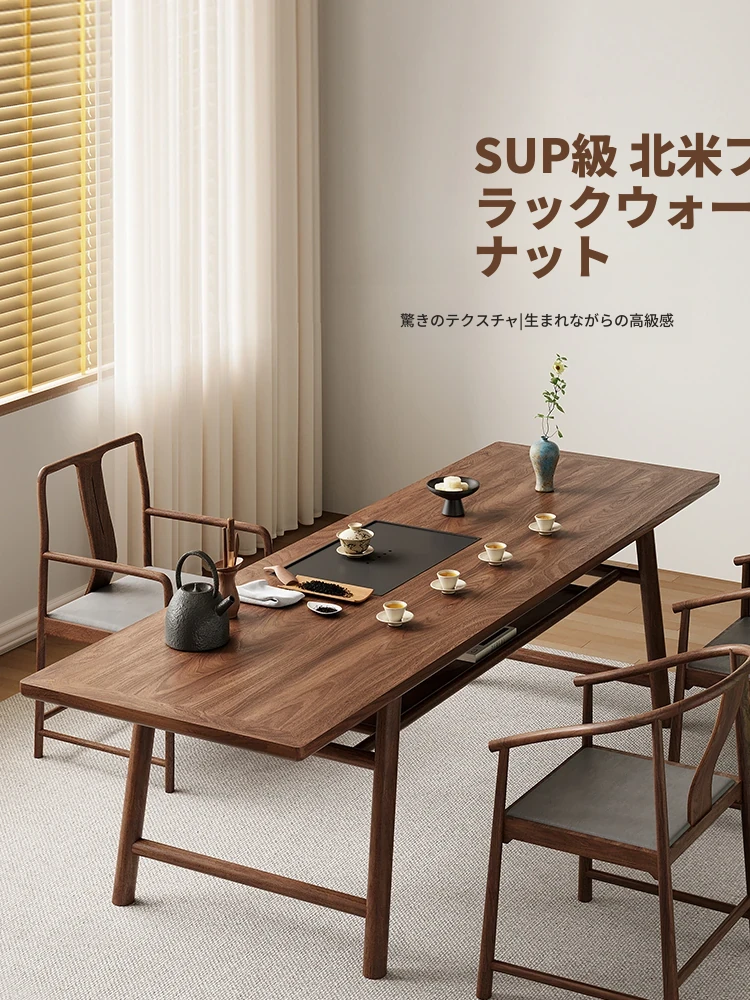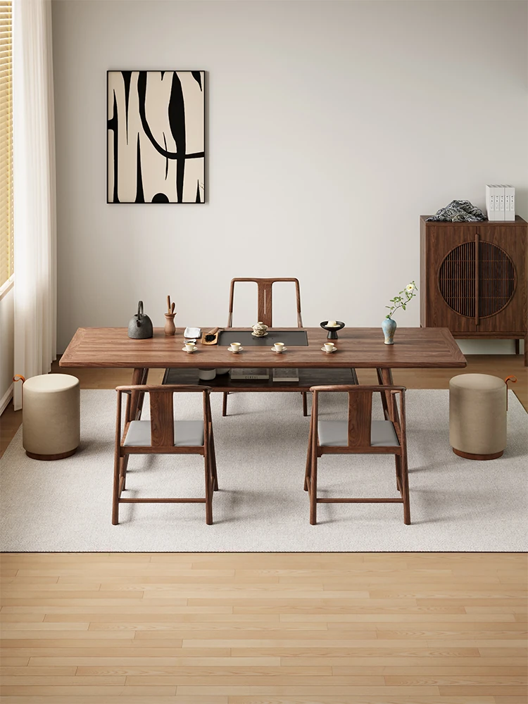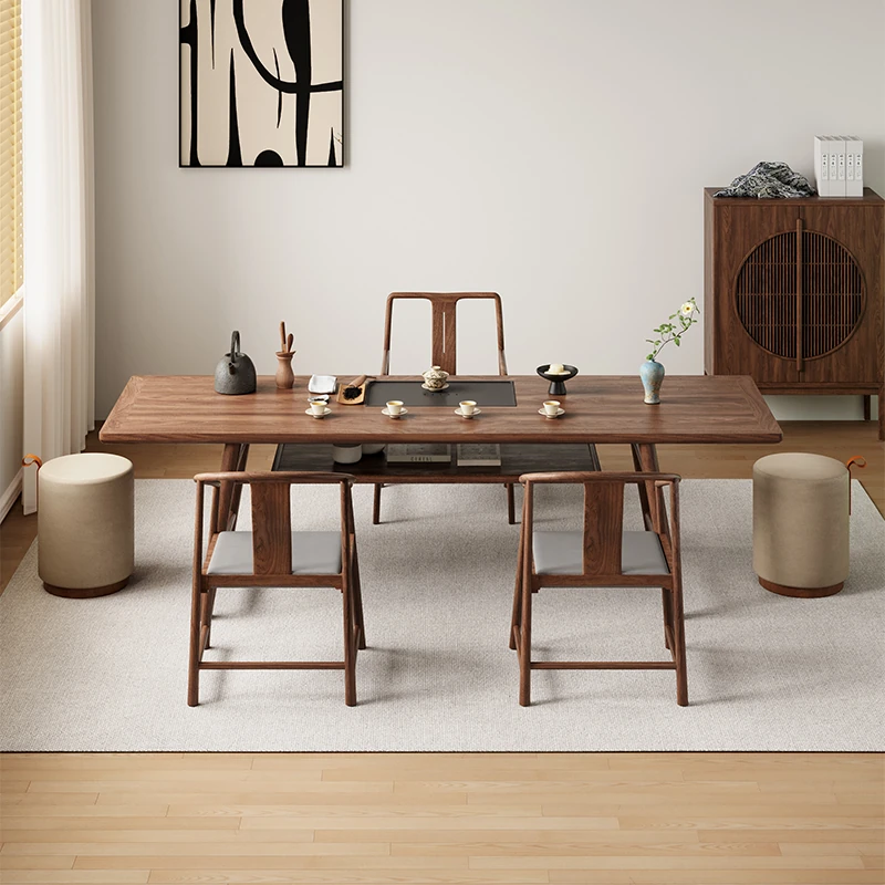 新中式ブラックウォールナット製の大板茶卓椅子セット - 禅の精神を感じる高級感あふれる実木茶台、2025年新作!心地よいひとときをお届けします。
