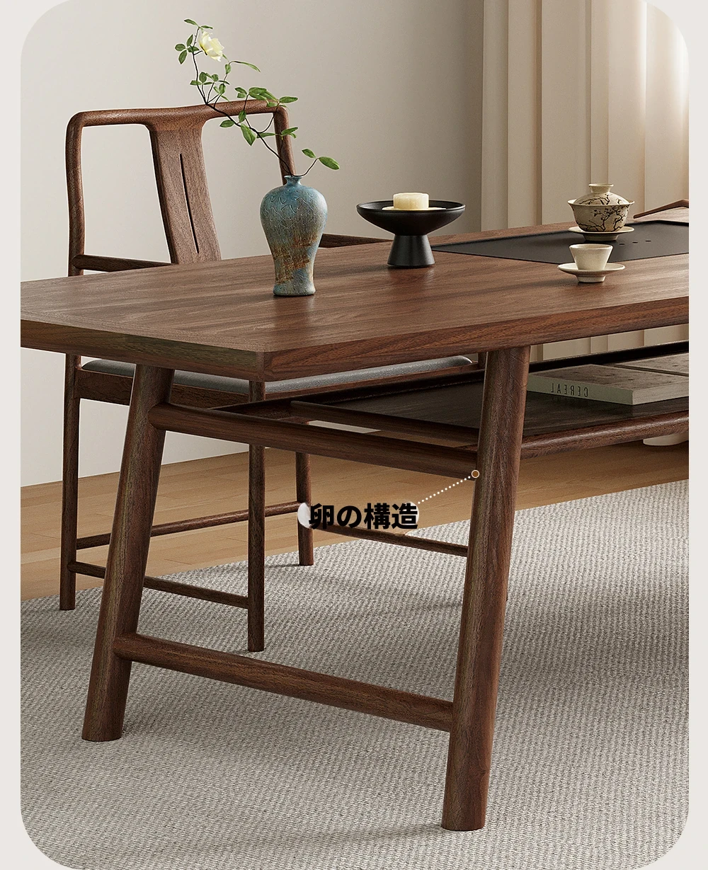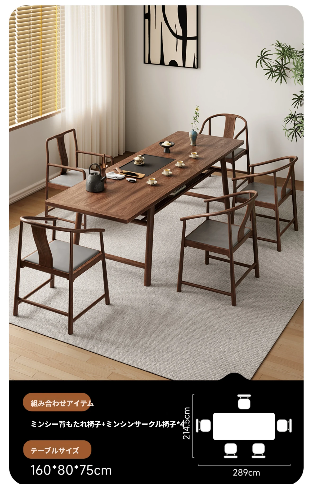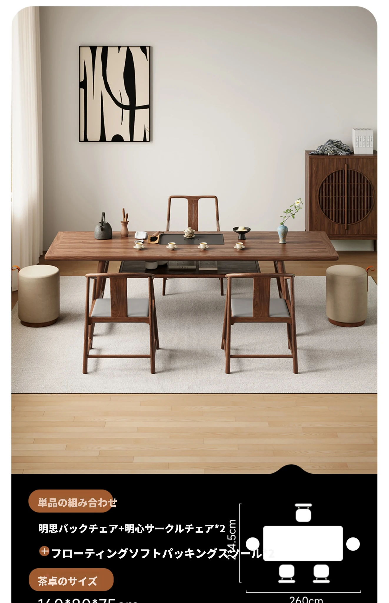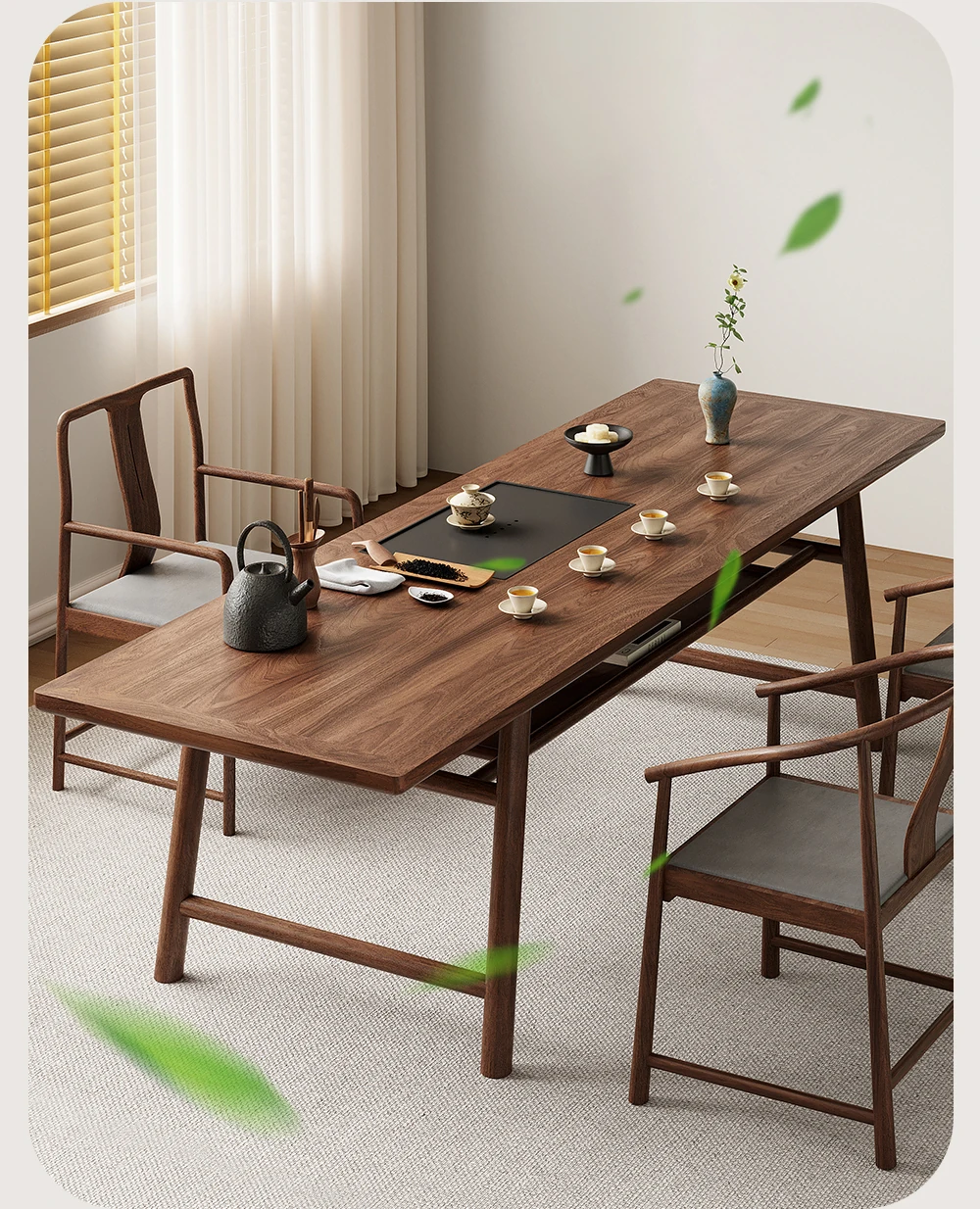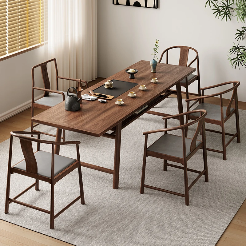 新中式ブラックウォールナット製の大板茶卓椅子セット - 禅の精神を感じる高級感あふれる実木茶台、2025年新作!心地よいひとときをお届けします。