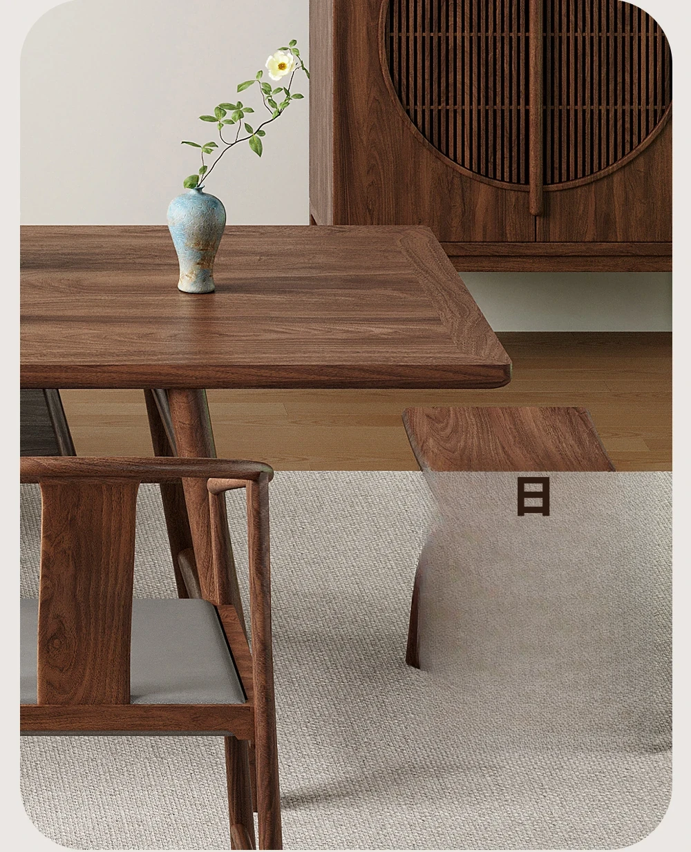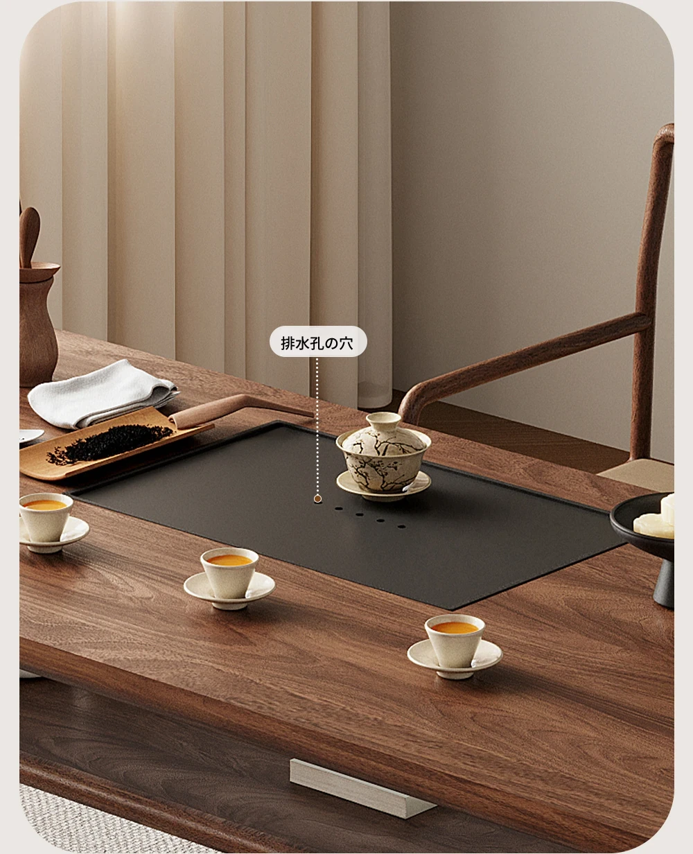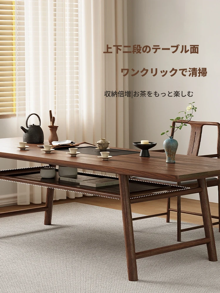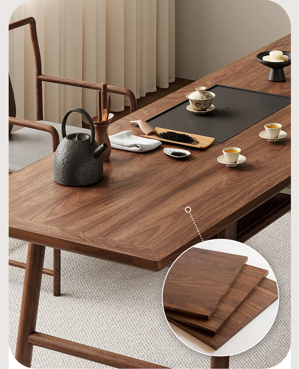 新中式ブラックウォールナット製の大板茶卓椅子セット - 禅の精神を感じる高級感あふれる実木茶台、2025年新作!心地よいひとときをお届けします。
