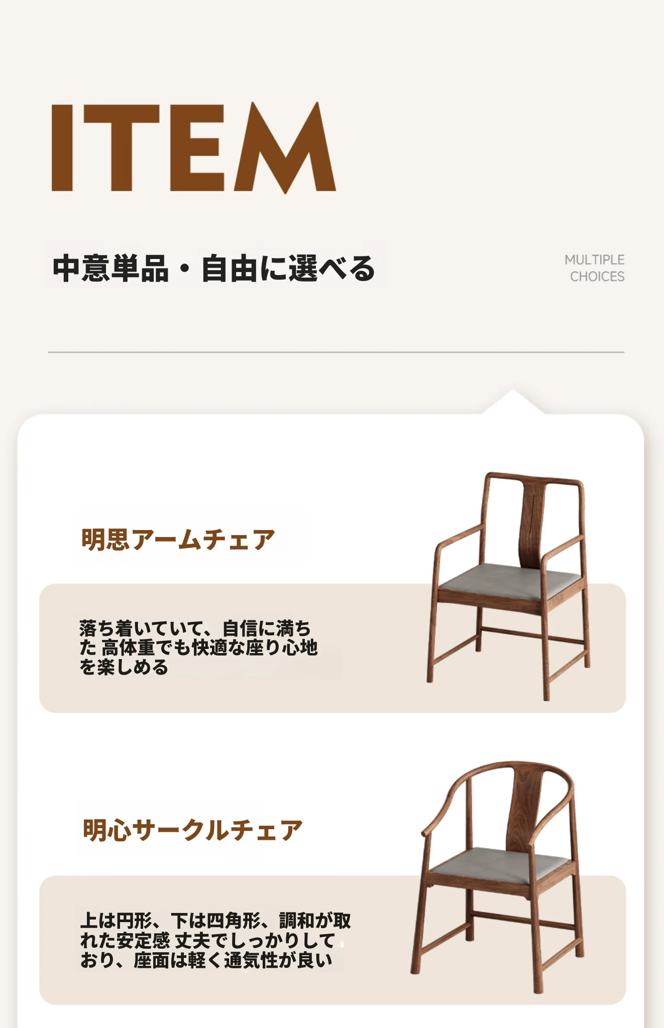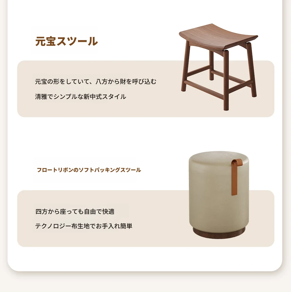 1.8メートル茶卓+背もたれ椅子+茶椅子*2+元宝スツール*2