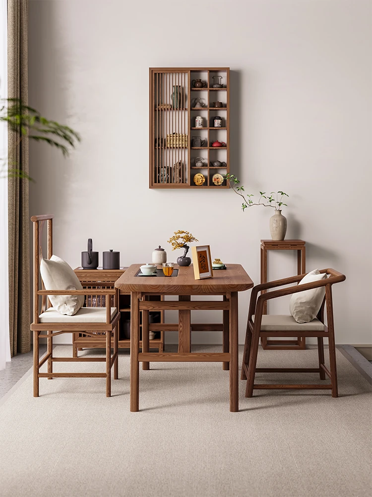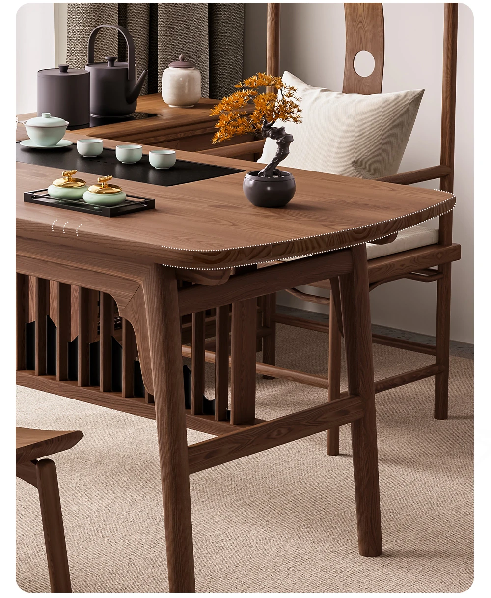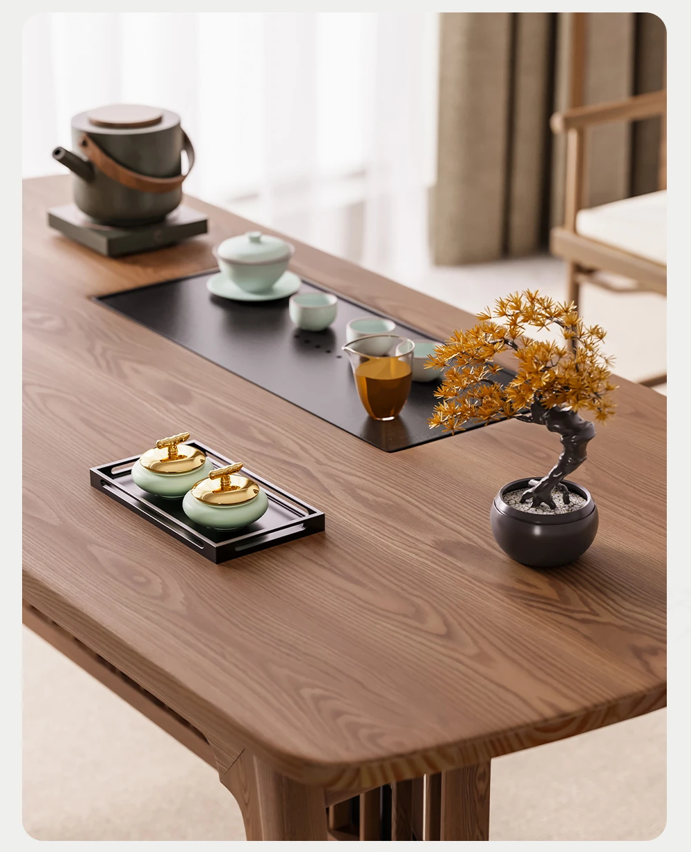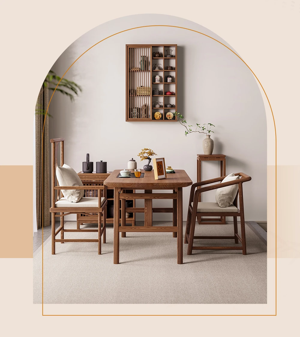 新中式美学!2025年款高端実木製バルコニー用茶卓 - 宋代の風格を取り入れた小型禅スタイルのティーテーブル。家でのリラックスタイムに最適な一品!