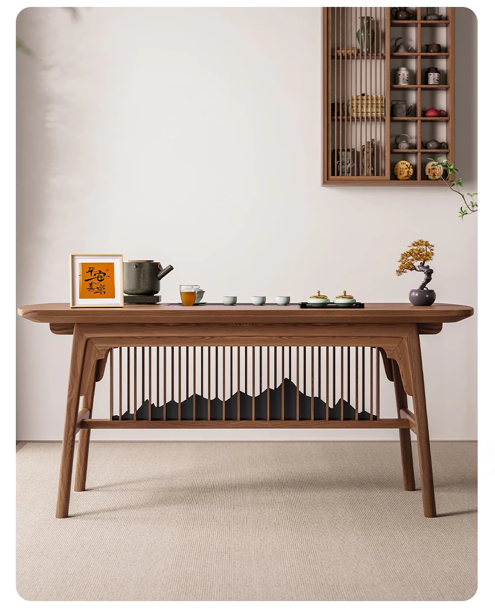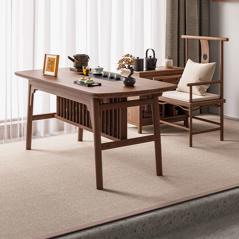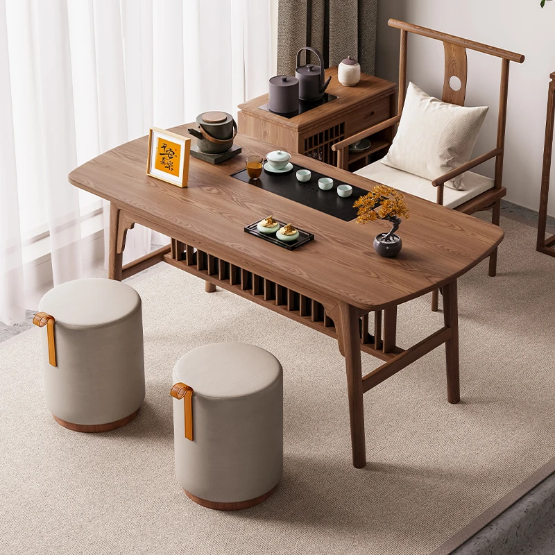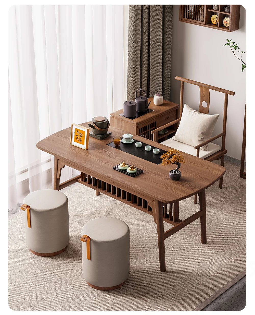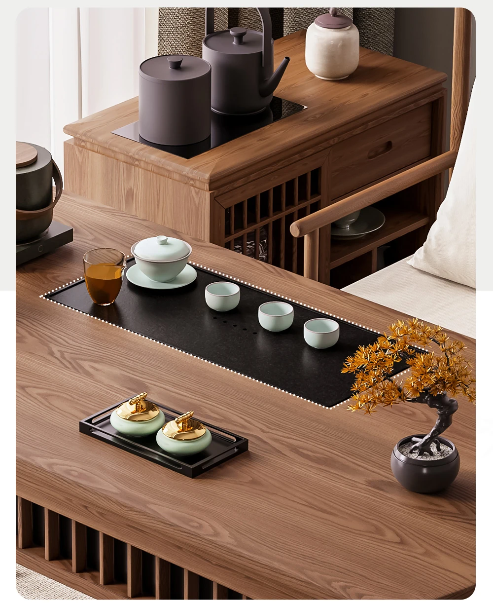 新中式美学!2025年款高端実木製バルコニー用茶卓 - 宋代の風格を取り入れた小型禅スタイルのティーテーブル。家でのリラックスタイムに最適な一品!