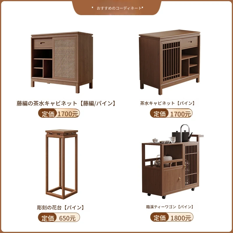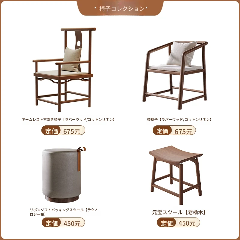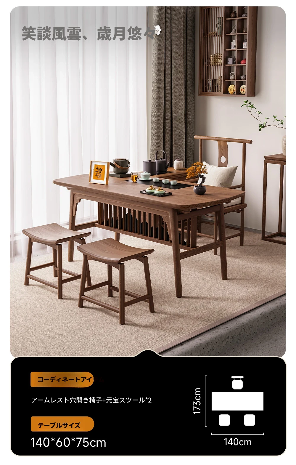 1.0メートル大葉松茶卓+アームレスト付き穴あき椅子+茶椅子