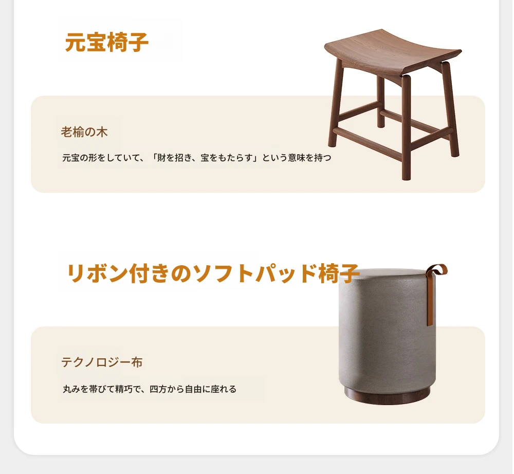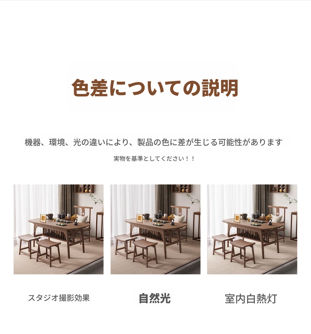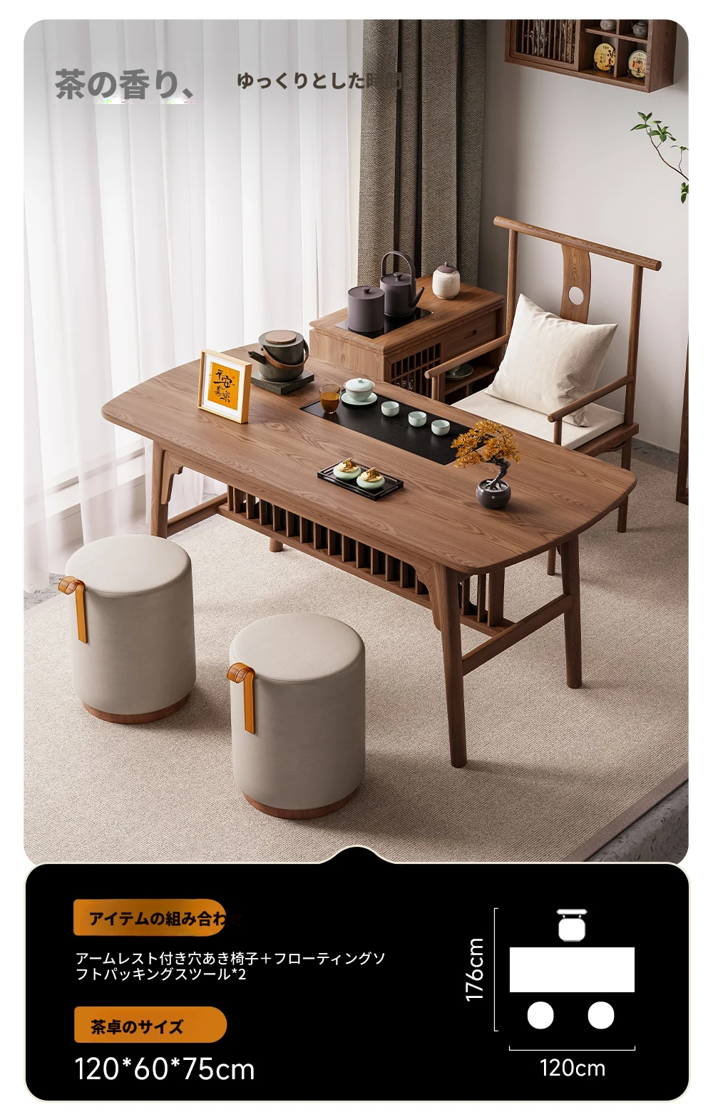1.0メートル大葉松茶卓+アームレスト付き穴あき椅子+ソフトパッド椅子*2