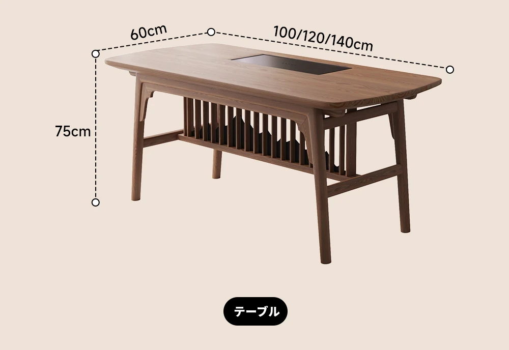 1.4メートル大葉松茶卓+アームレスト付き穴あき椅子