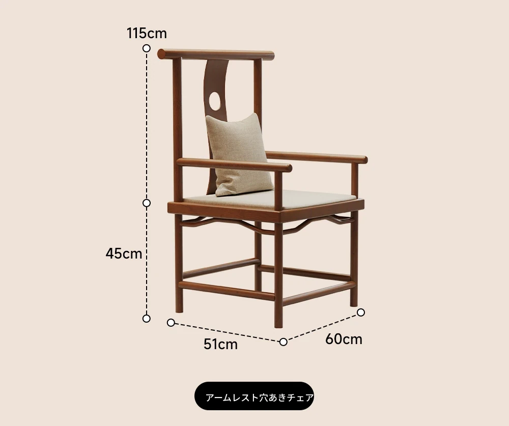 1.0メートル大葉松茶卓+アームレスト付き穴あき椅子