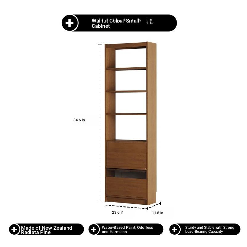 [Walnut color] solid wood bookshelf 23.62in*11.81in*84.65in