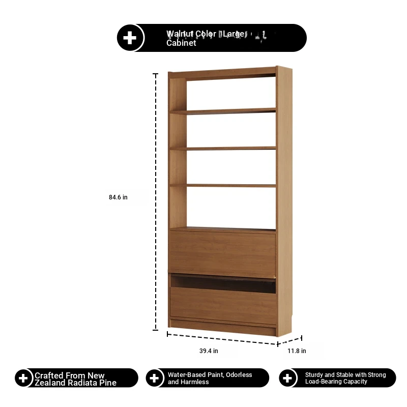 [Walnut color] solid wood bookshelf 39.37in*11.81in*84.65in