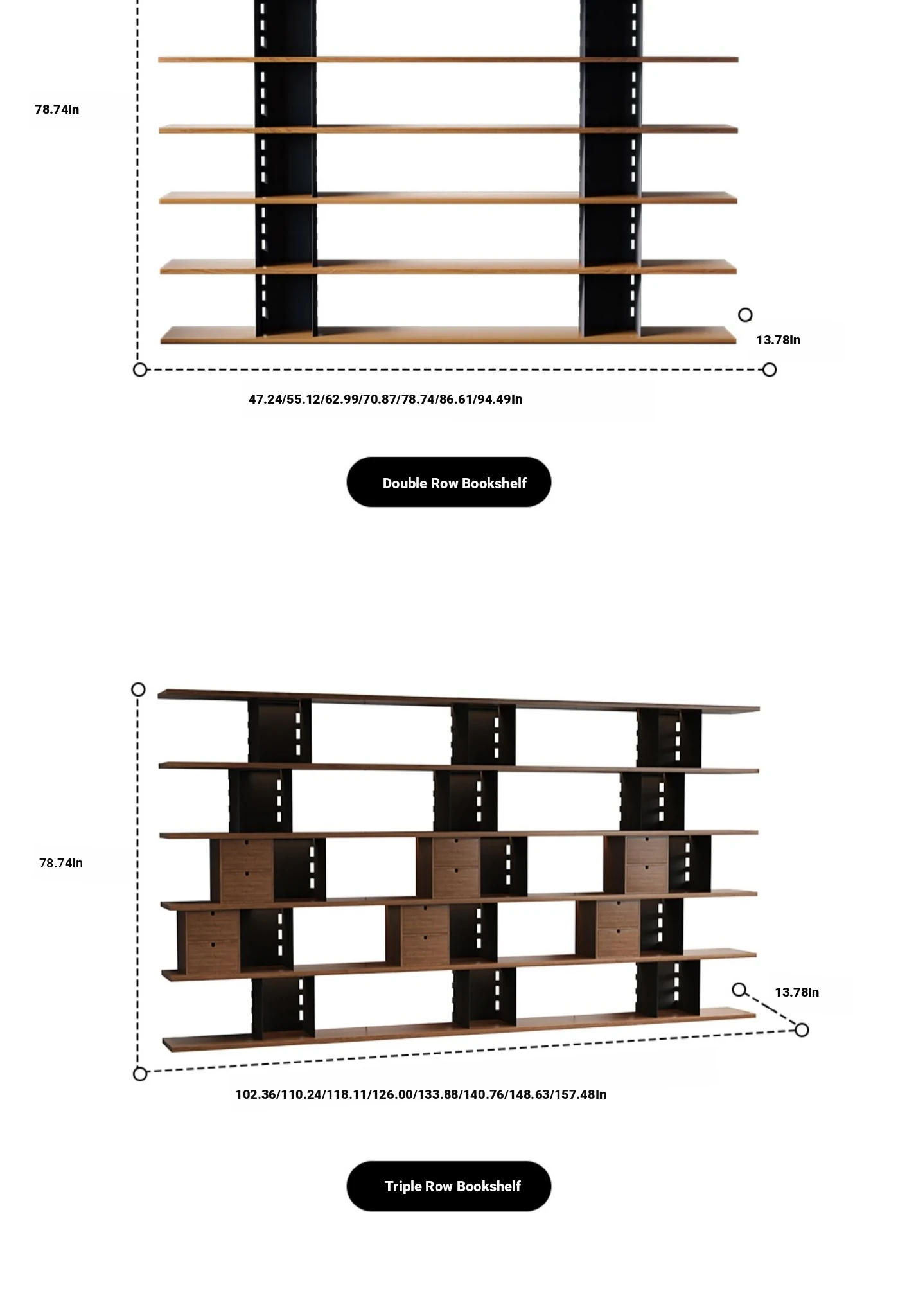 Staggering double bookshelf: 39.37in*13.78in*78.74in * 2