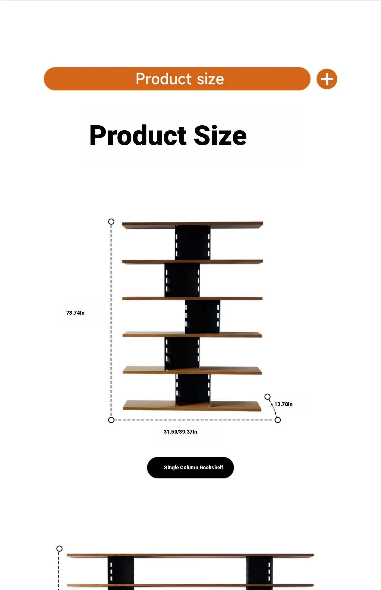 Vertical double bookshelf: 39.37in*13.78in*78.74in * 2