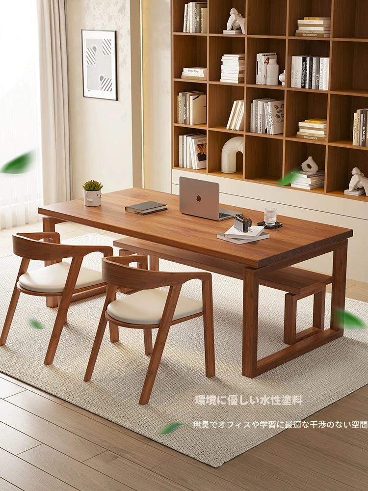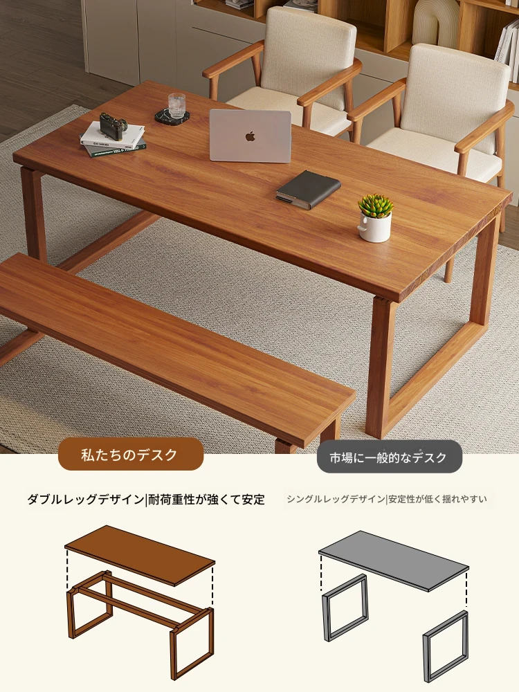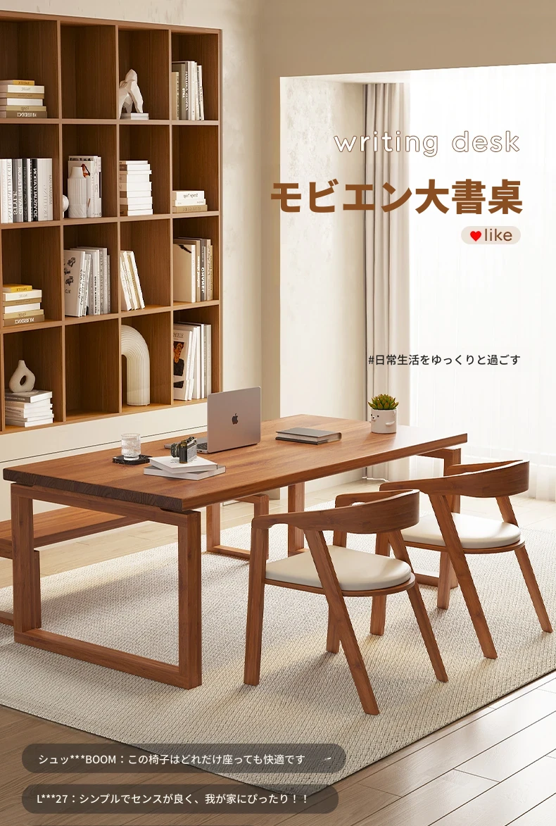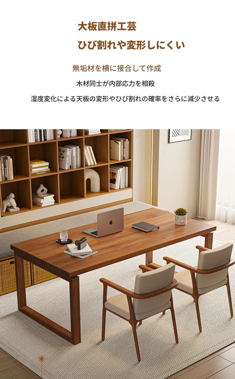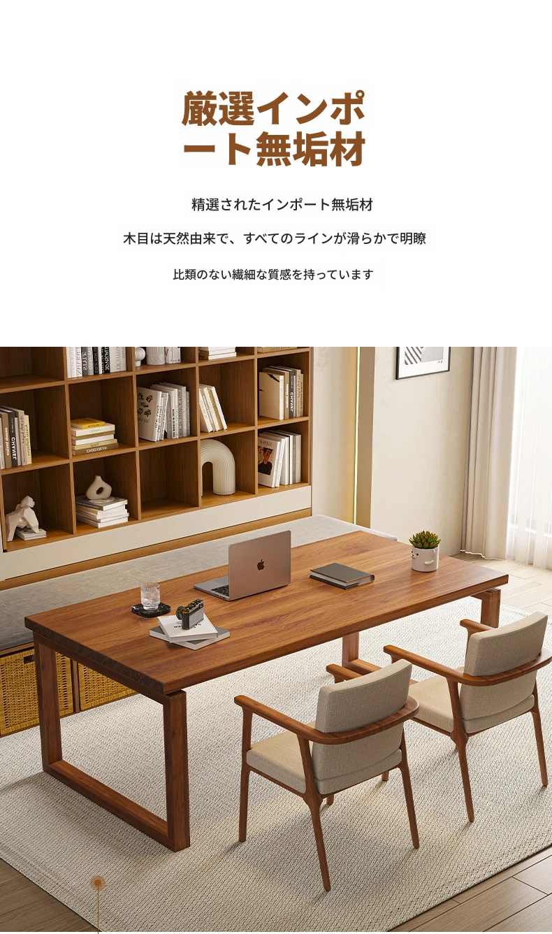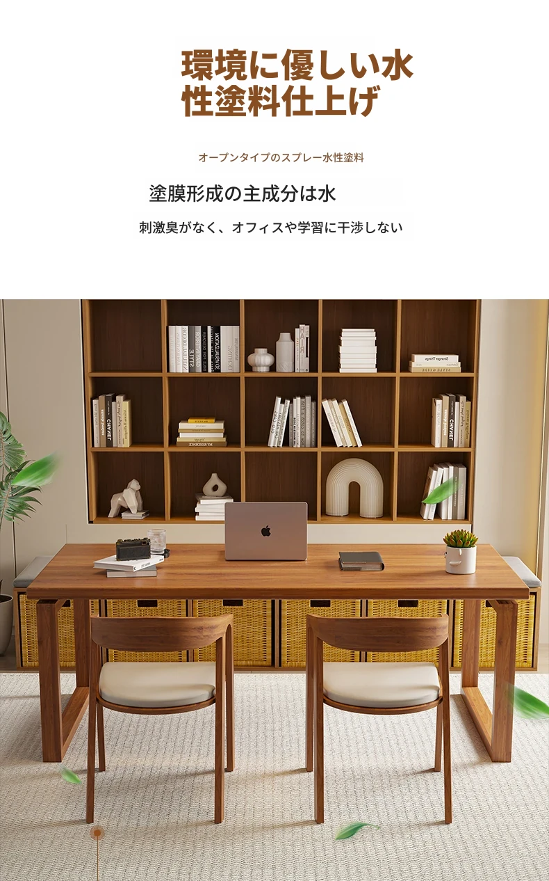 吉赠モダンシンプルな無垢材の大きなデスク|学生や家庭用に最適なコンピューターデスク・学習机・ライティングデスク|ナチュラルな木の温もりを感じるロングテーブル