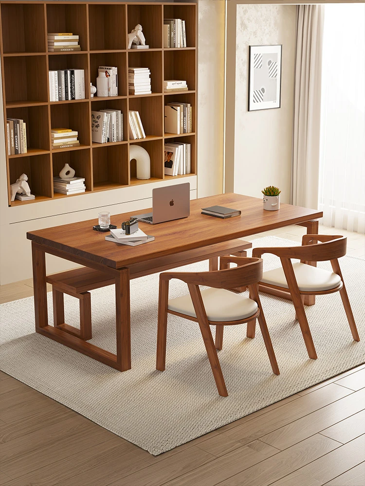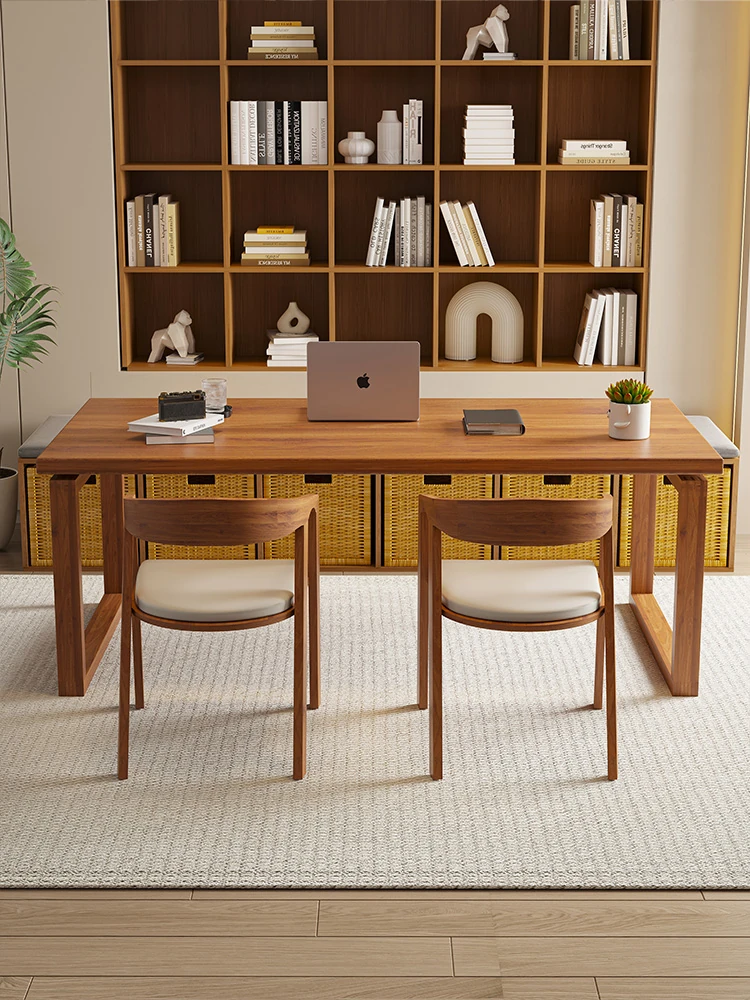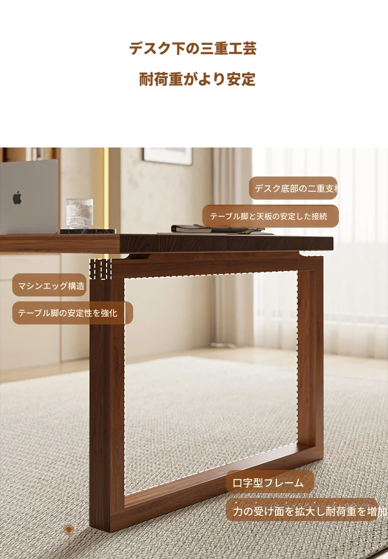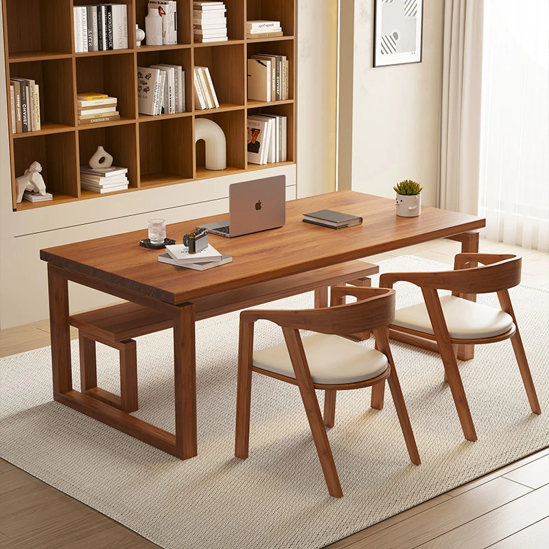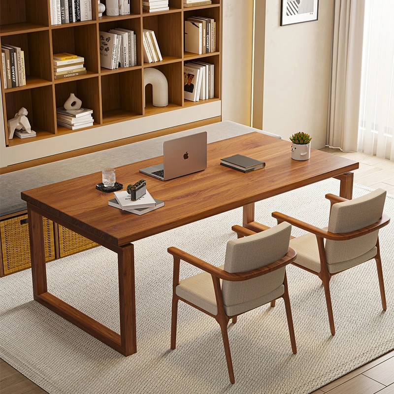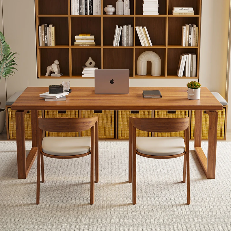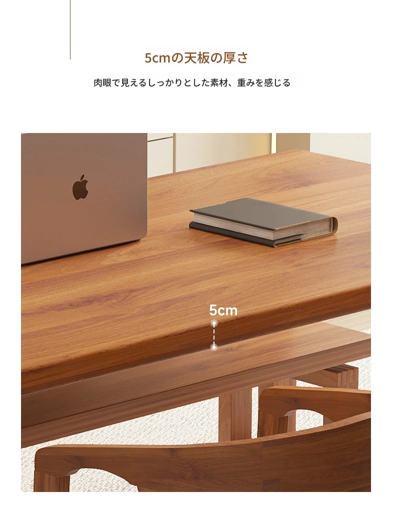 吉赠モダンシンプルな無垢材の大きなデスク|学生や家庭用に最適なコンピューターデスク・学習机・ライティングデスク|ナチュラルな木の温もりを感じるロングテーブル