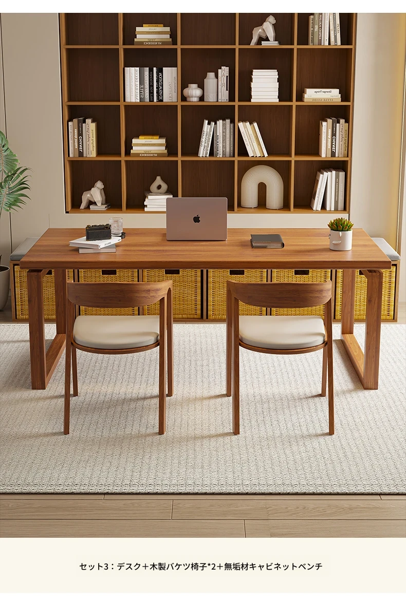 【家族みんなで快適に座れる】1.8メートルのデスク+木製バケツ椅子*2+1.8メートルのベンチ
