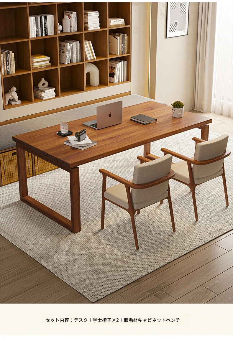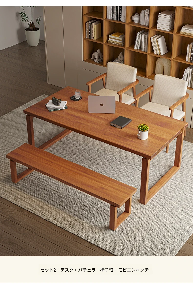 【家族みんなで快適に座れる】2.0メートルのデスク+学士椅子*2+2.0メートルのベンチ