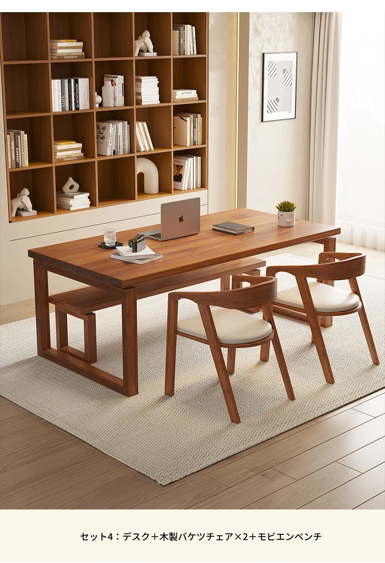 【家族みんなで快適に座れる】1.4メートルのデスク+木製バケツ椅子*2+1.4メートルのベンチ