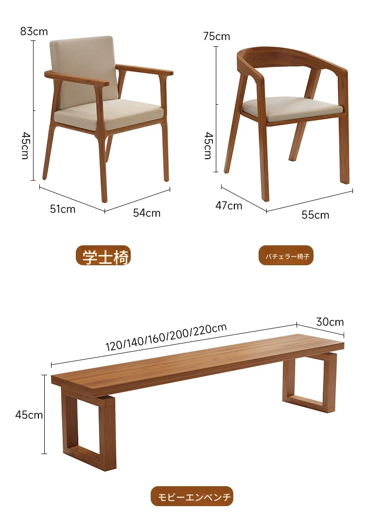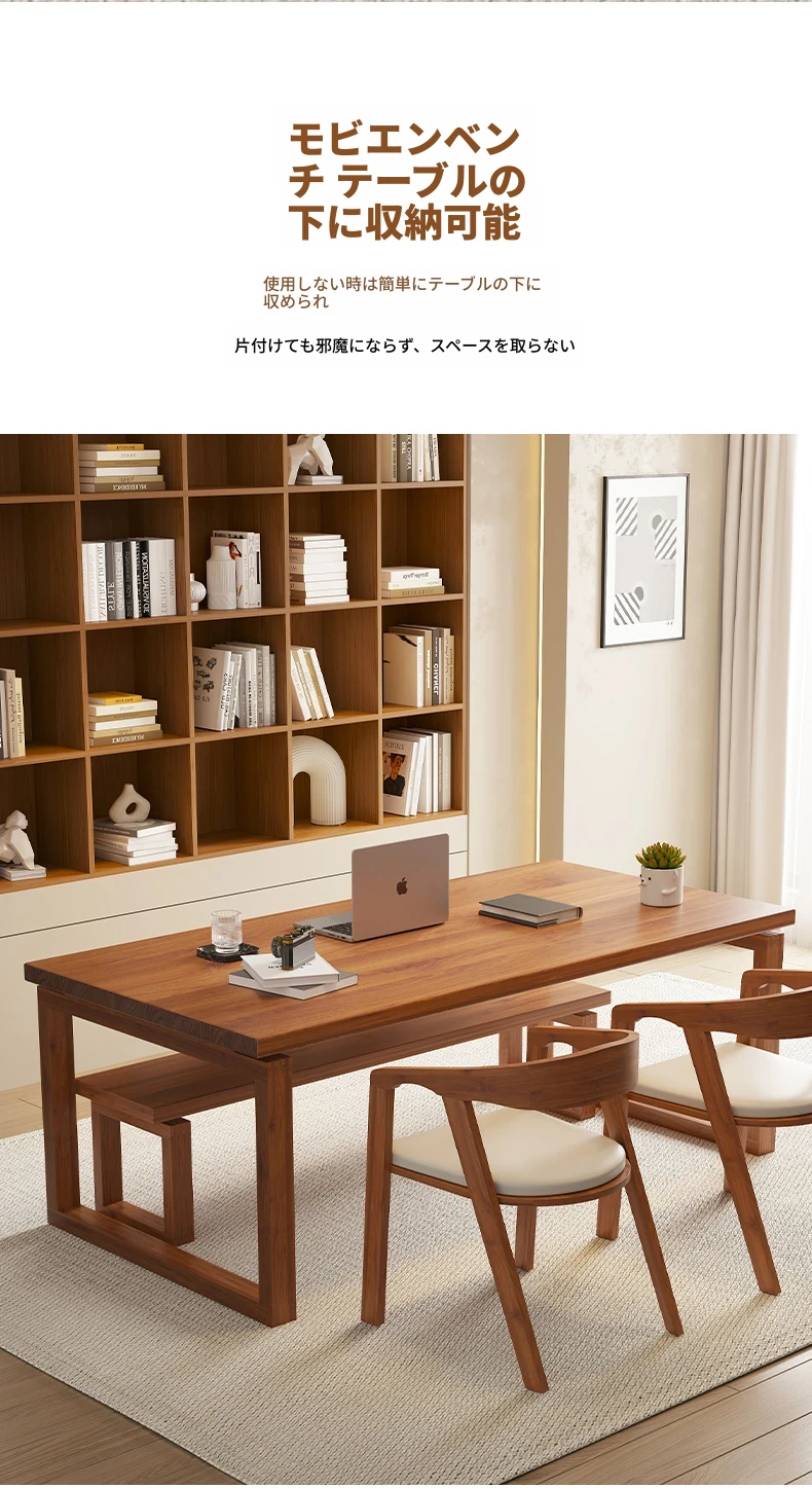 【家族みんなで快適に座れる】1.4メートルのデスク+学士椅子*2+1.4メートルのベンチ