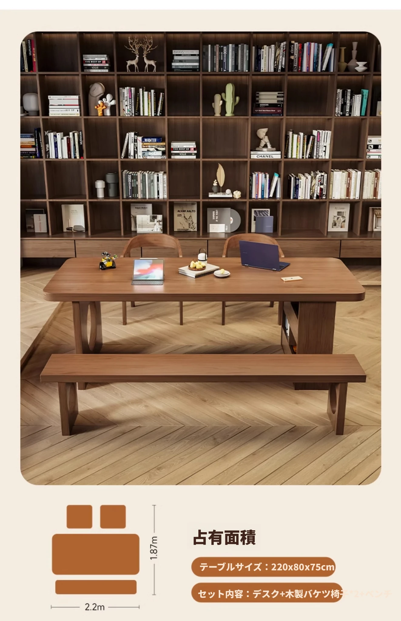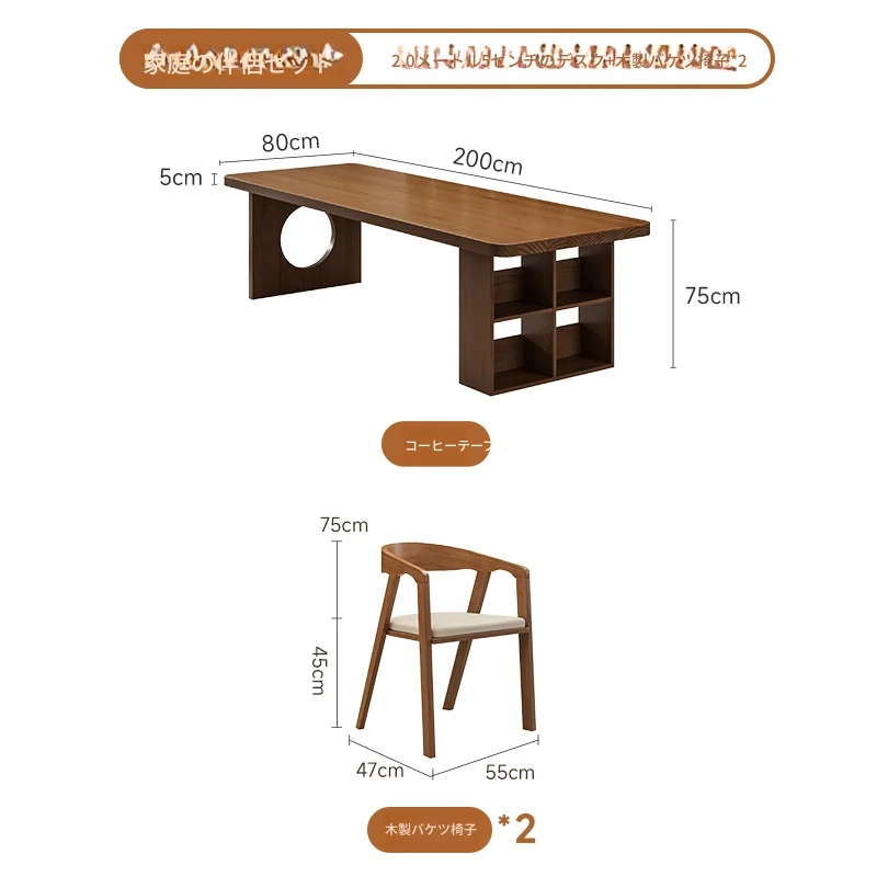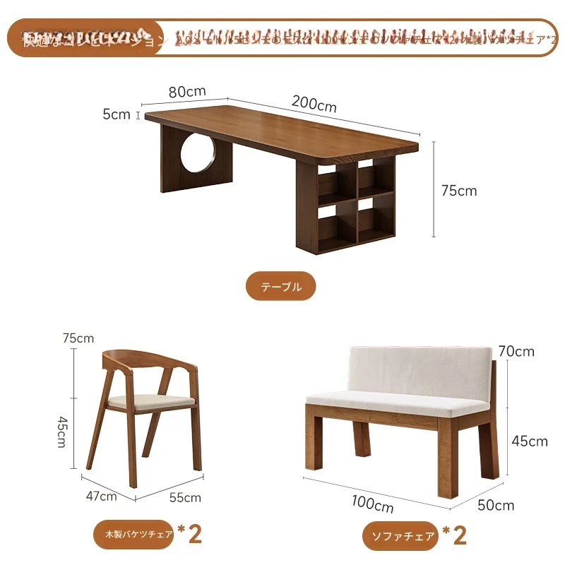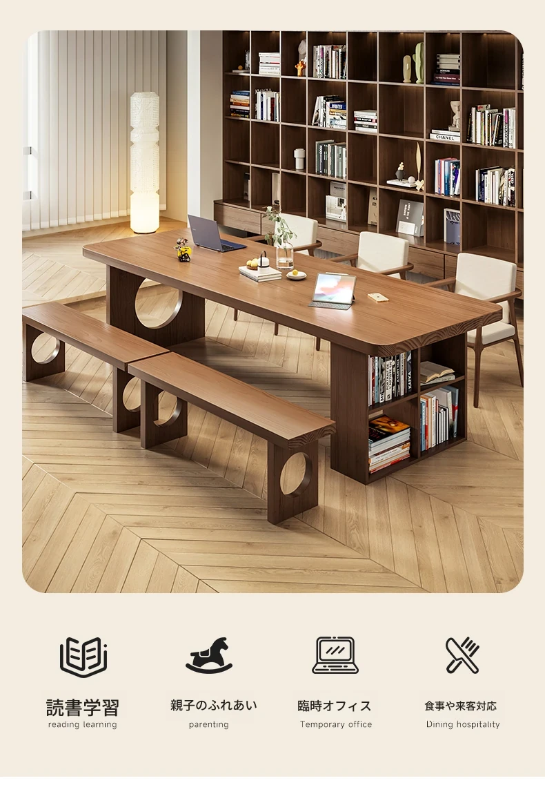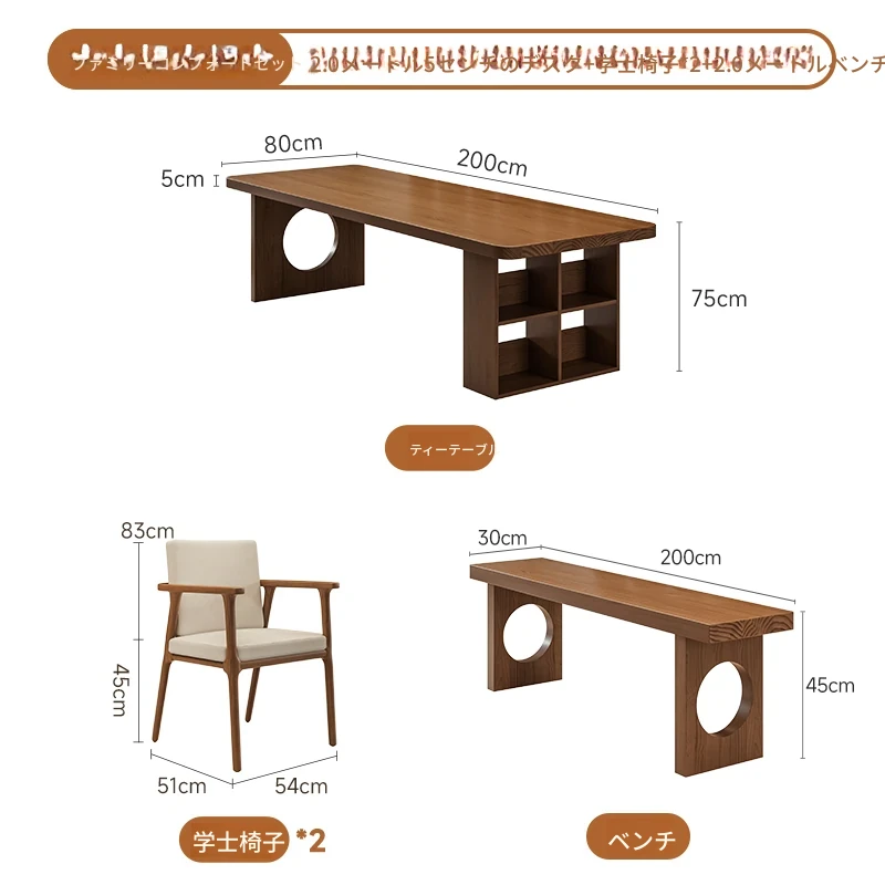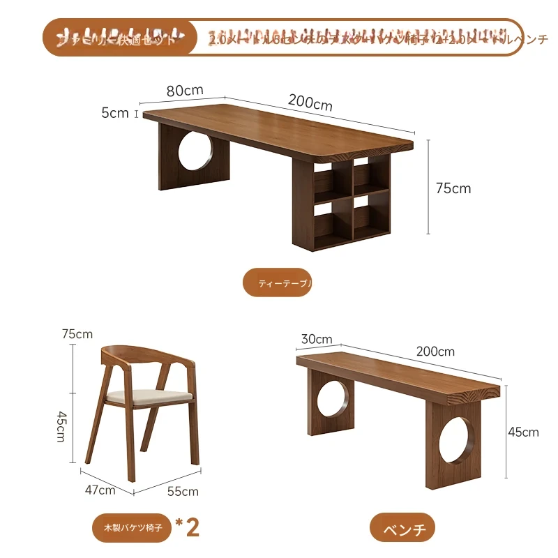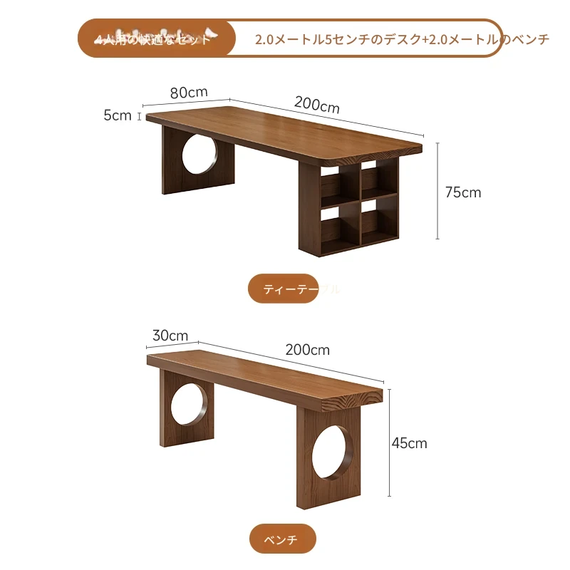 【家族快適セット】2.0メートル5cmデスク+学士椅子*2+2.0メートルベンチ