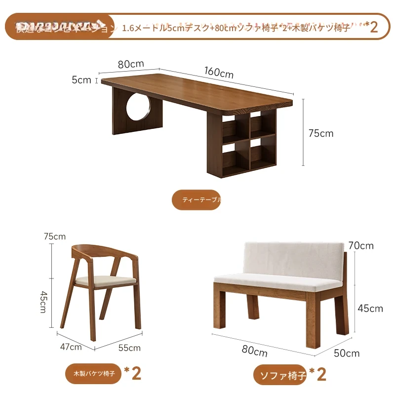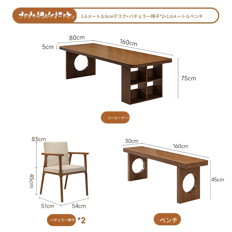【家族快適セット】1.6メートル5cmデスク+学士椅子*2+1.6メートルベンチ