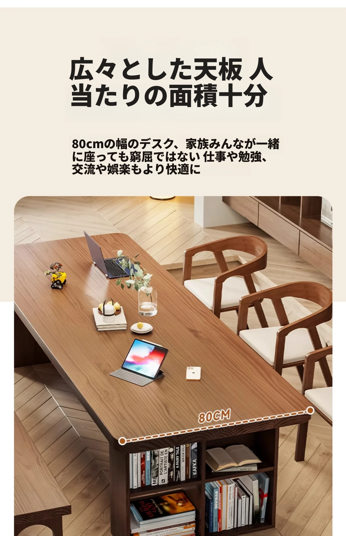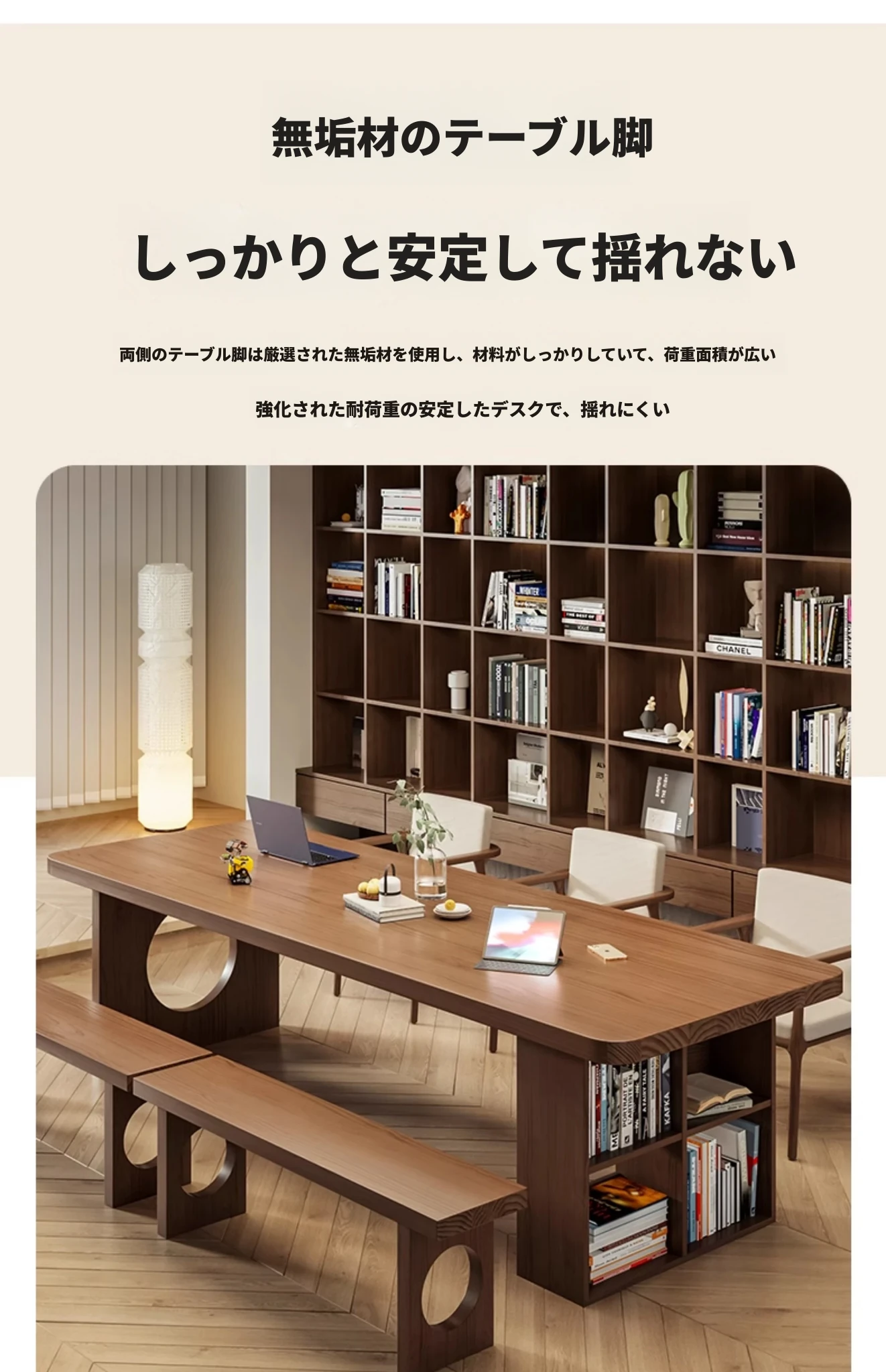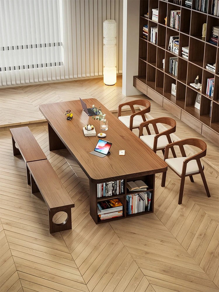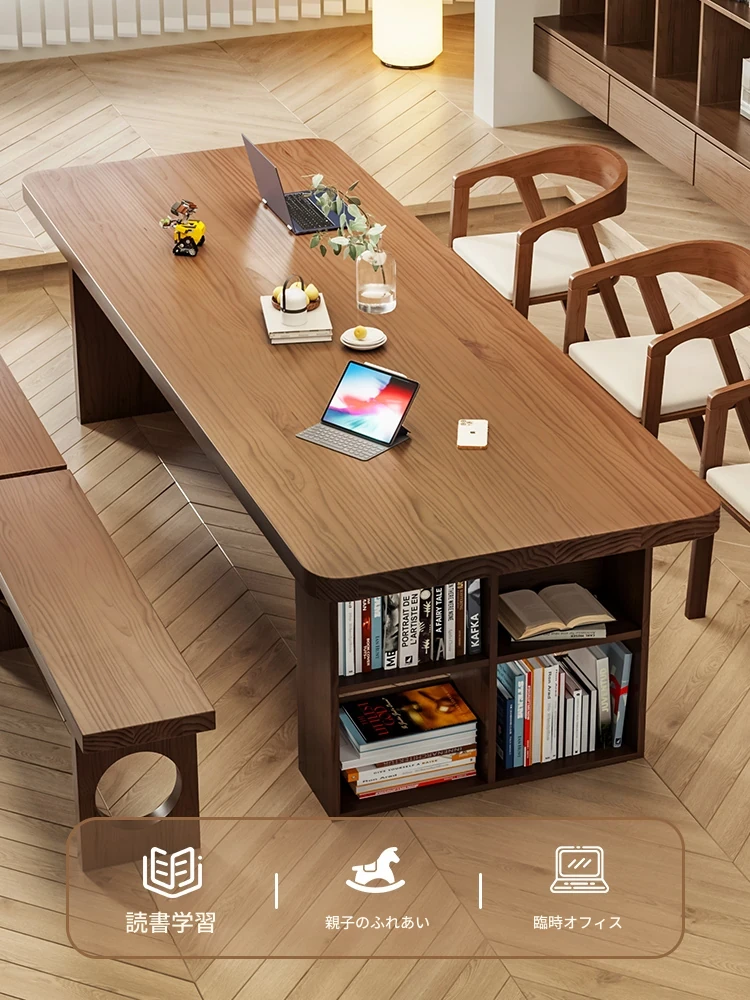 「吉赠」実木製大長書桌&書架一体型 学生・客室・家庭用コンピュータ学習デスク 書き物台 モダンシンプルデザイン!使いやすさとスタイルを兼ね備えた理想の作業空間を実現します。