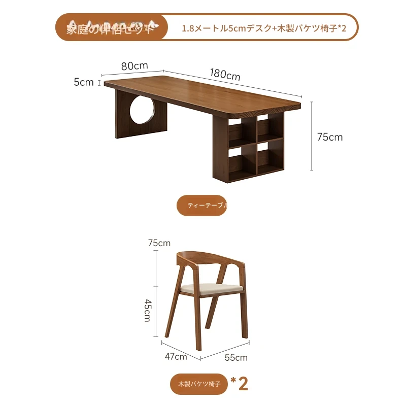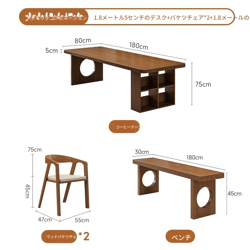 【家族快適セット】1.8メートル5cmデスク+学士椅子*2+1.8メートルベンチ