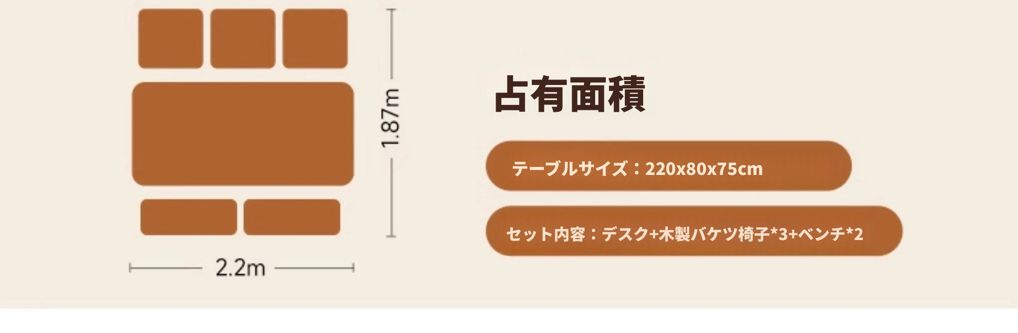 【家族快適セット】1.8メートル5cmデスク+バケツ椅子*2+1.8メートルベンチ