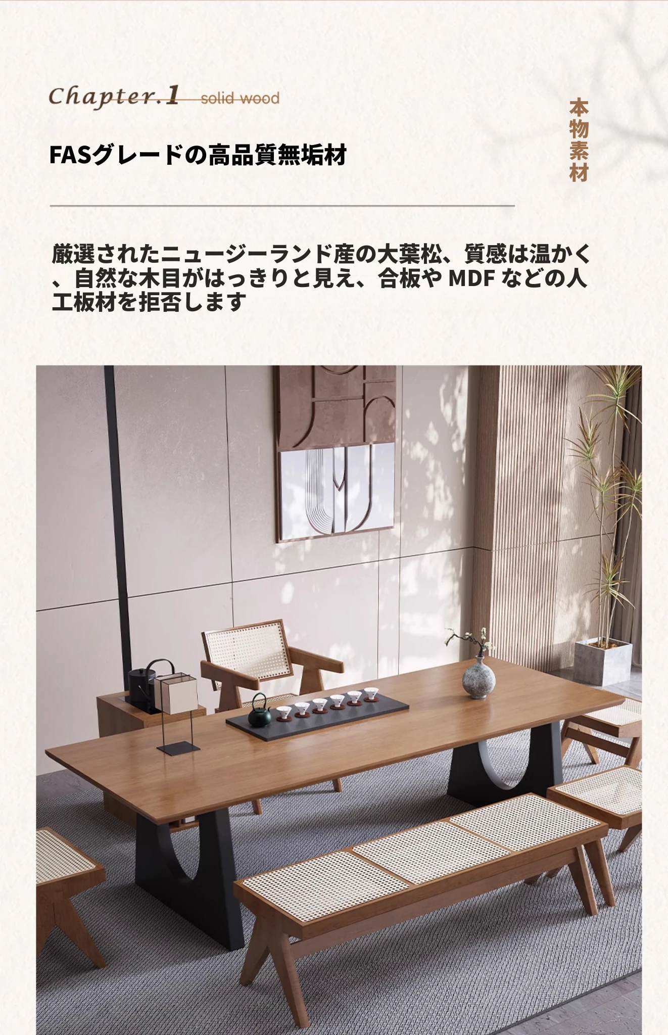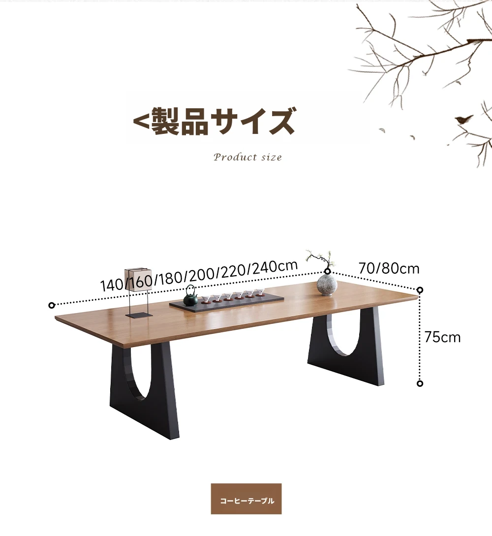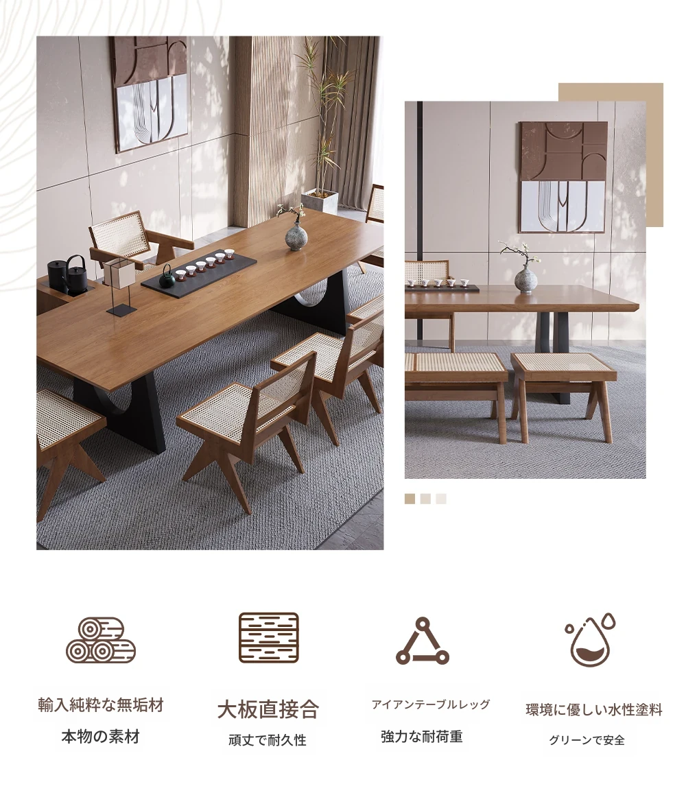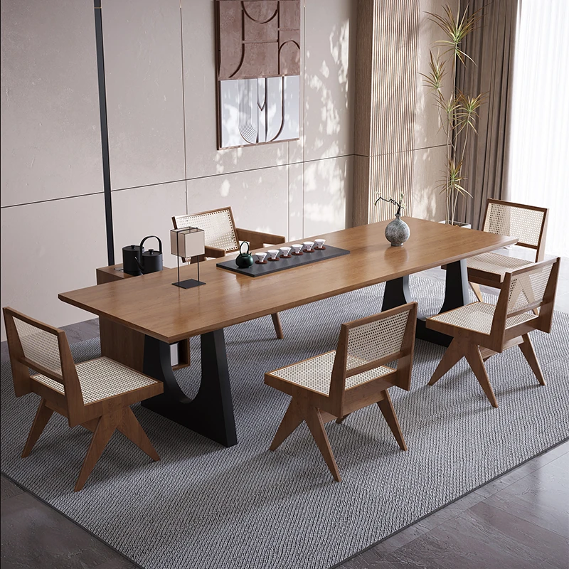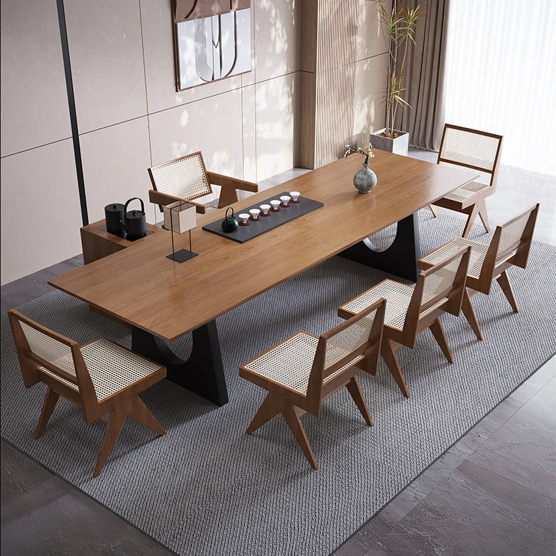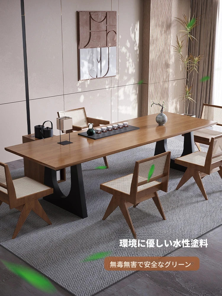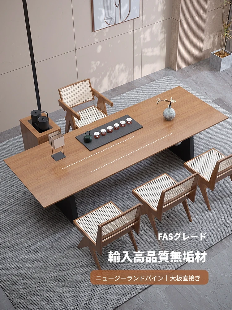 現代的なシンプルデザインの天然木製茶卓セット - リビングやオフィスに最適!2025年新作、広々とした大板で快適なティータイムをお楽しみください。