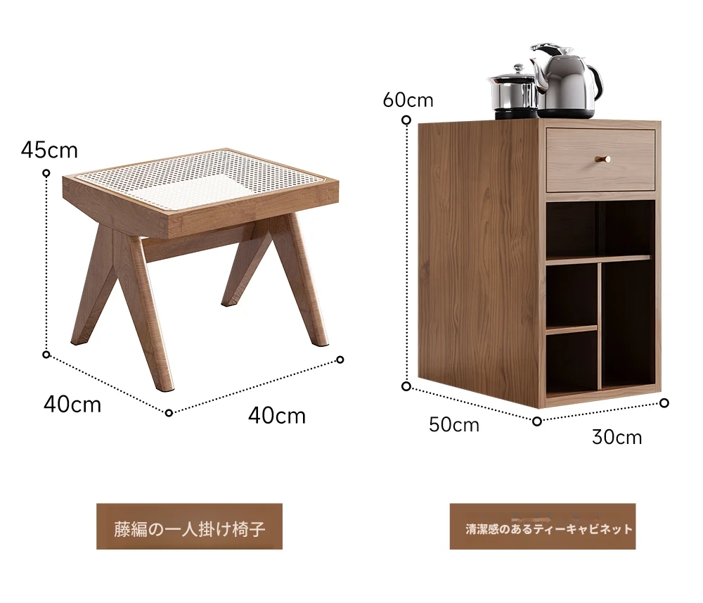 1.8メートル茶卓+チャンディガール椅子+一人用スツール*3+1.28メートル長椅子