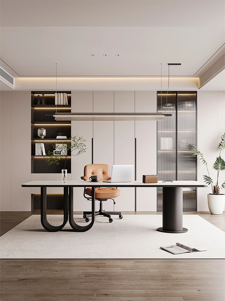 吉赠モダンシンプル軽奢岩板オフィス用社長デスク - 高級感あふれるパソコンデスク、書斎デスク、作業台に最適!