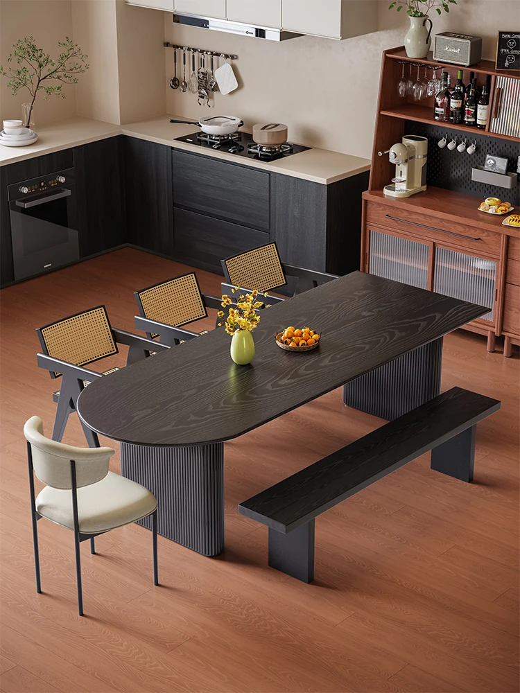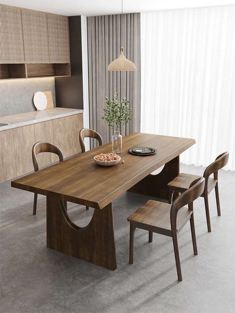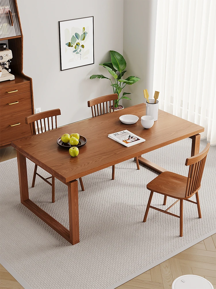 2025年新作!吉赠中古風デザインの無垢材ダイニングテーブルセット - モダンでシンプル、小型住宅にもぴったりな長方形テーブル。家族や友人との楽しい食事を演出します!
