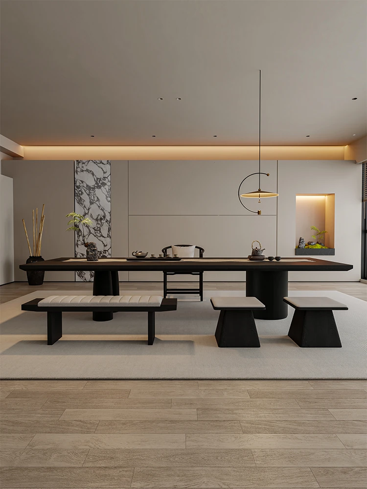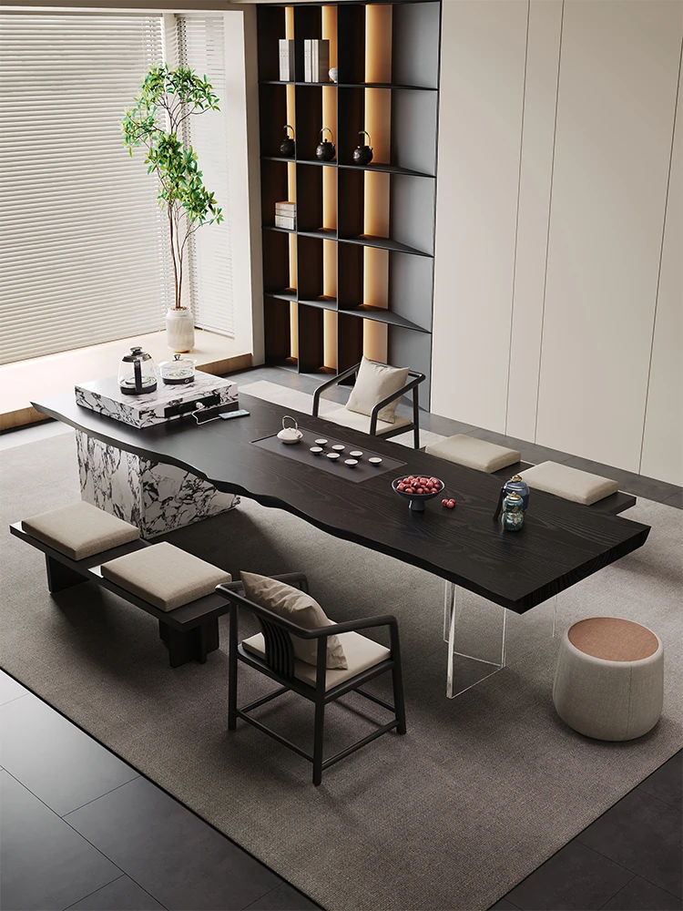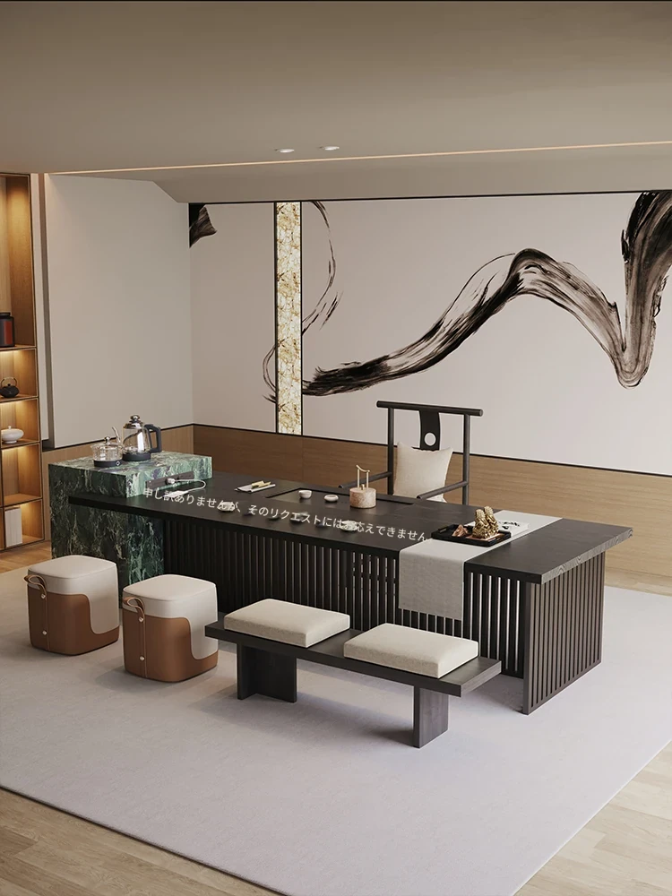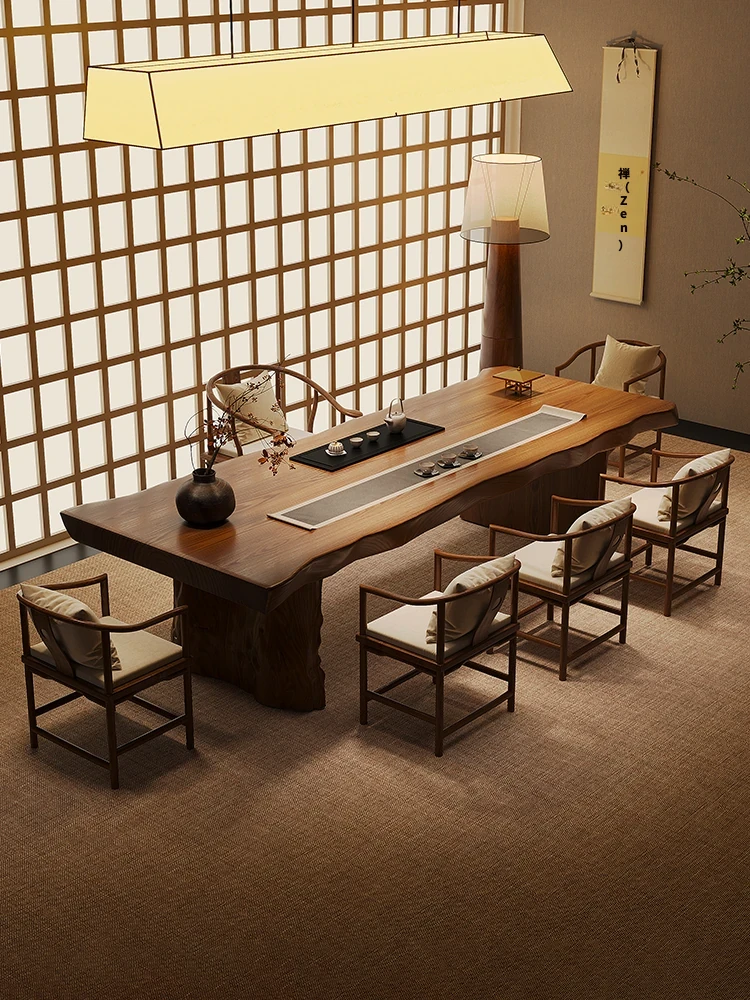 吉赠新中式実木大板茶卓椅子セット - 宋代美学と禅の雰囲気を楽しむ贅沢な茶台。2025年新作、リビングにぴったりの家用茶具!心安らぐひとときを提供します。
