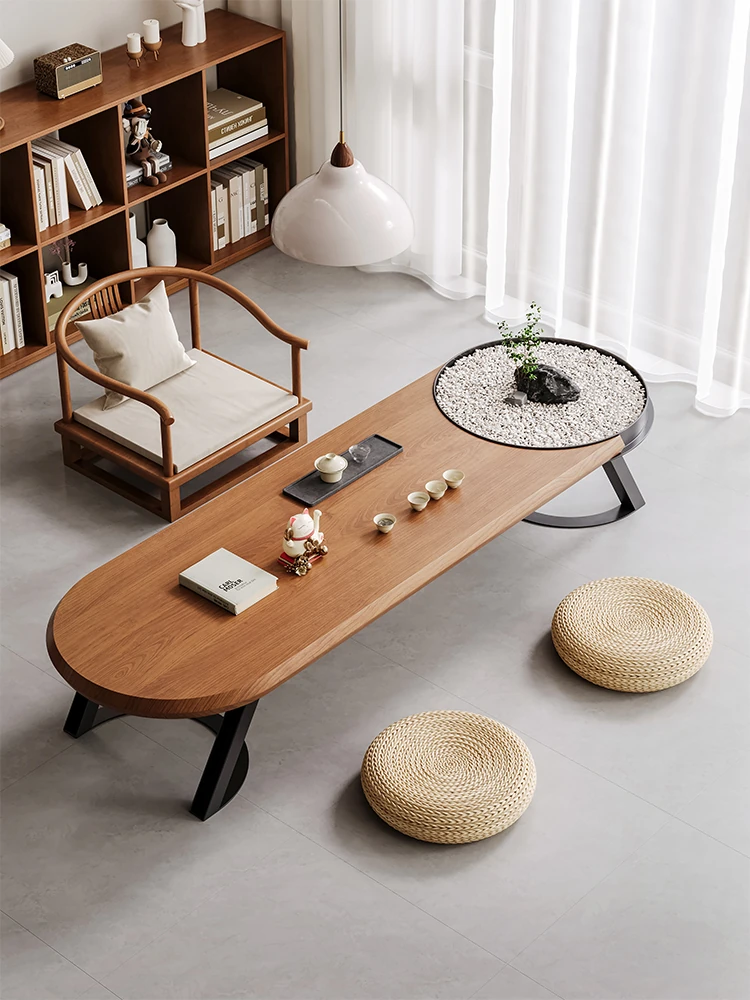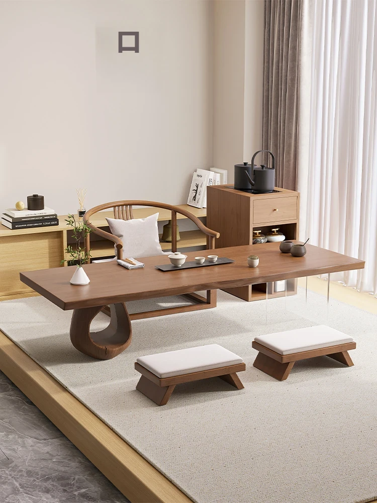 吉赠の和風禅スタイルの畳テーブル - 新中式デザインのバルコニー用実木製ローテーブル、居心地の良い空間を演出!2025年最新モデル!家庭にぴったりのアイテムです。