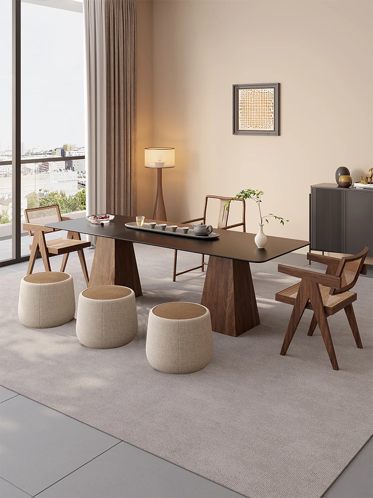 吉赠イタリアンストーン製 北米ブラックウォールナット テーブル&チェアセット リビングルーム用 高級無垢材ティーテーブル 2025年新作!洗練されたデザインで、心地よいひとときを演出します。